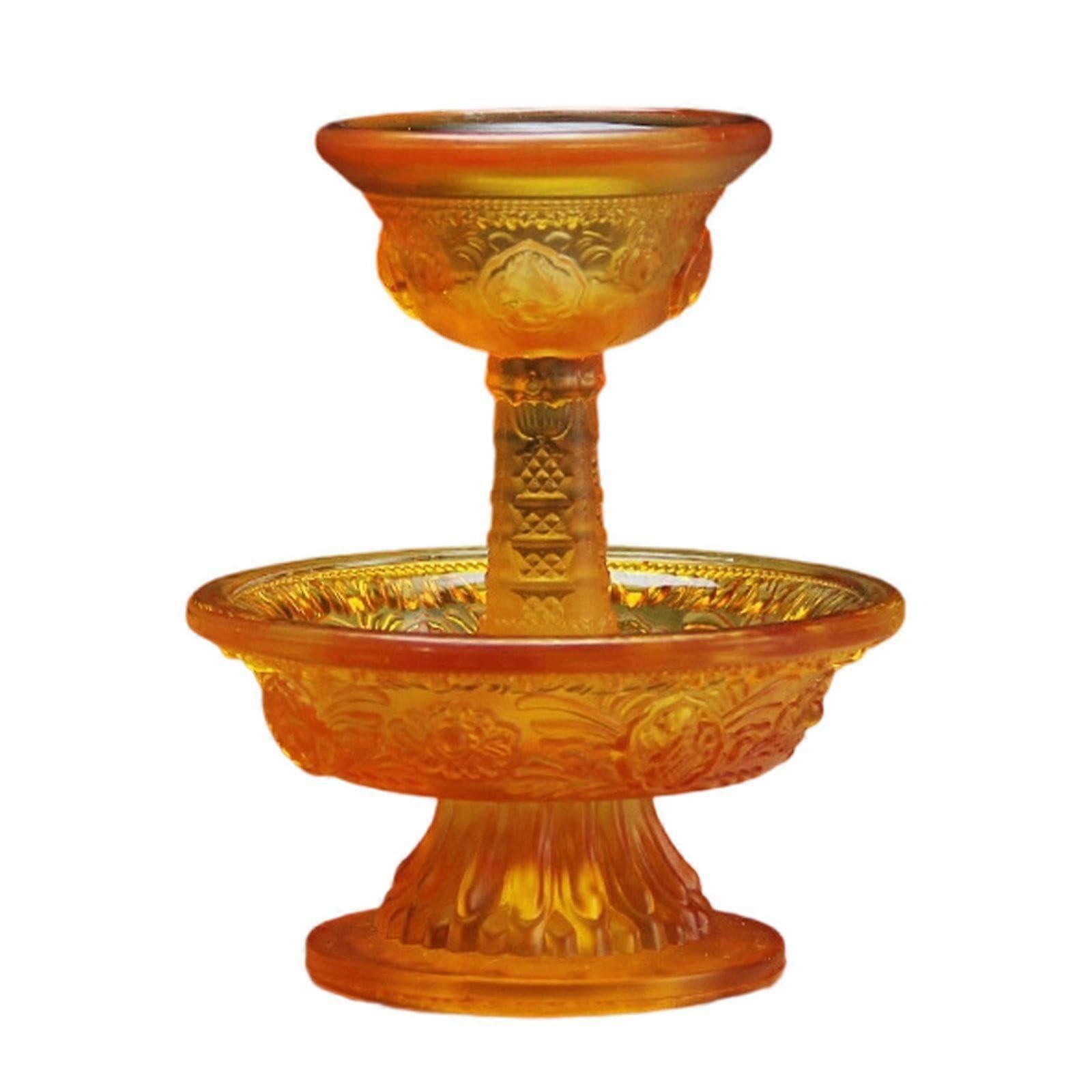 Tibetan Offering Bowl Glass Buddhist Altar Cup Elegant Ritual Design for Temple or Home Decor