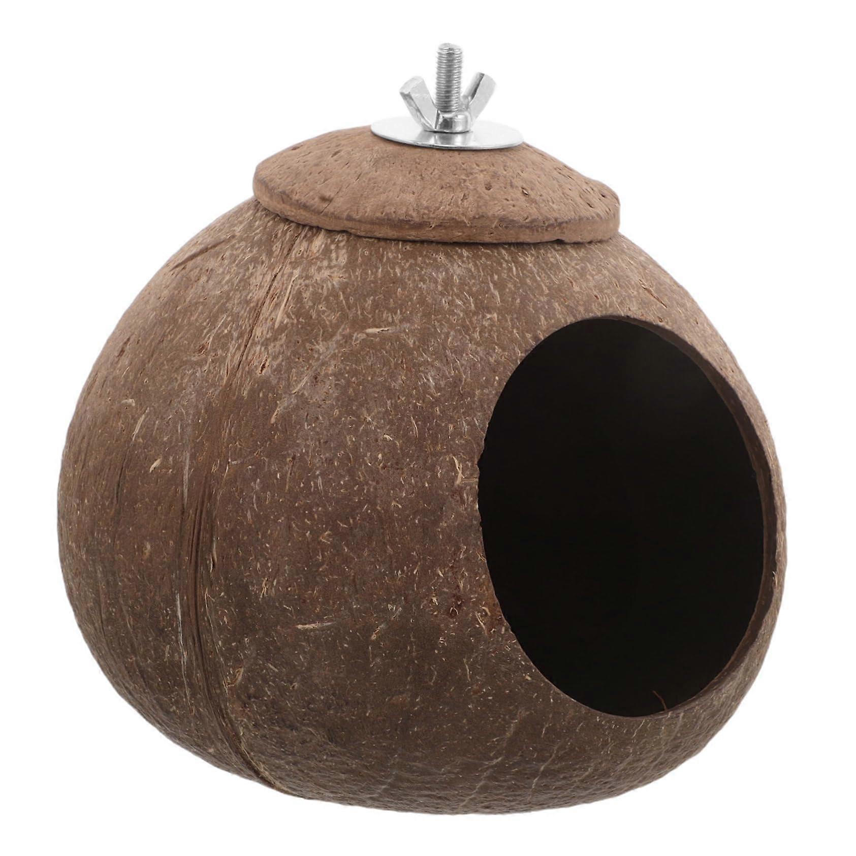 Natural coconutshell nest designed as a secure, comfortable shelter for small birds. Key benefits Comfortable shelter: provides a private resting and nesting area that helps reduce stress and promote natural behaviors. Compatible with small species: suitable for parakeets, cockatiels, hummingbirds and other similar small birds. Durable natural material: made from a coconut shell for a sturdy, longlasting home that holds its shape and provides protection. Easy to maintain: the coconut shell's natural texture allows straightforward cleaning to help maintain a healthy environment for your birds. Features and performance Function: acts as a resting spot and private nesting area to support sleep, quiet time, and nesting behavior. Material: 100% natural coconut shell construction for reliable strength and a natural look. Compatibility and size suitability: designed for a range of small bird species (parakeets, cockatiels, hummingbirds); ideal where a compact, enclosed shelter is preferred. Hygiene and longevity: simple to clean and wipe down, helping reduce bacteria and keep the nest usable season after season. Practical use scenarios Incage sleeping spot: place inside a parakeet or cockatiel cage to give your bird a consistent, private place to sleep and rest. Breeding and nesting support: use during breeding season to provide a stable, enclosed nest that encourages nesting behavior while reducing stress. Small aviary shelter: add to a small aviary or indoor flight area to create a sheltered retreat for hummingbirds or other tiny species. What makes it stand out Natural coconut shell construction offers a balance of durability and natural appeal without synthetic materials. Simple upkeep: easy cleaning helps maintain bird health with minimal effort. Designed specifically for small birds that benefit from a compact, private nesting and resting space.