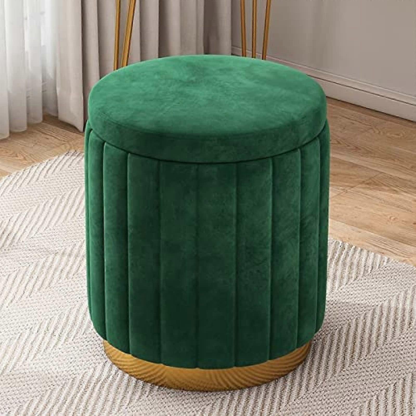 Round Velvet Storage Ottoman with Gold Base, Large Capacity Footrest Stool for Modern Living Room