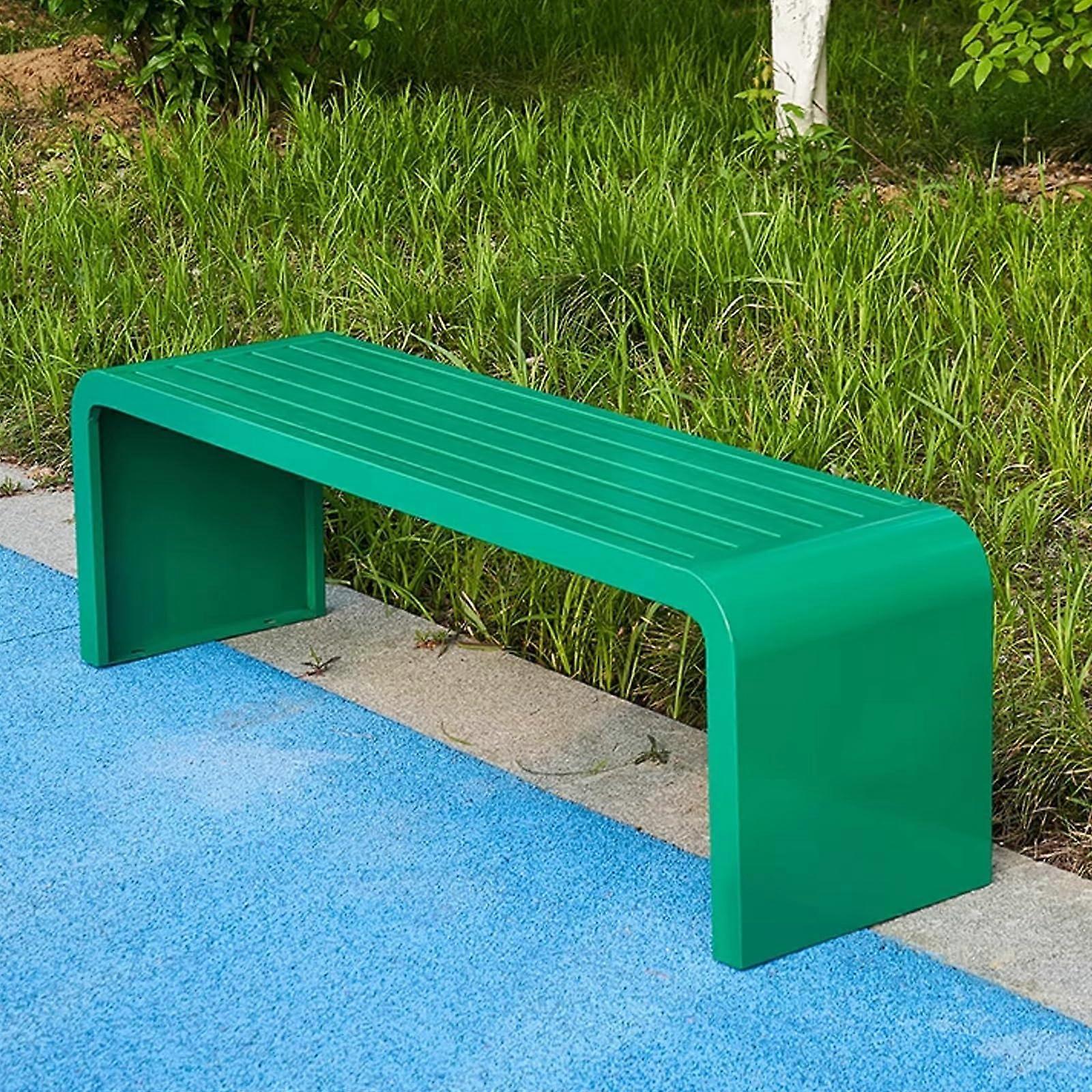 Weatherproof Outdoor Wooden Bench with HeavyDuty Steel Frame, Backless 39in Seat for Garden Patio Porch