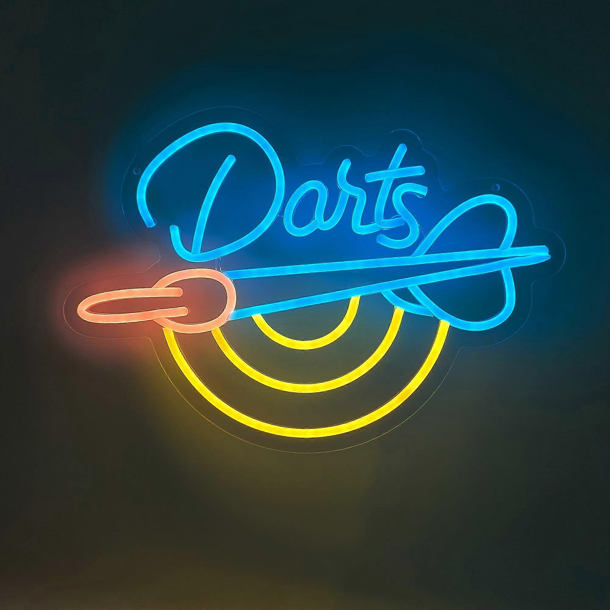 Darts Neon Sign with LED Dartboard Light for Game Room and Man Cave Wall Decor Blue