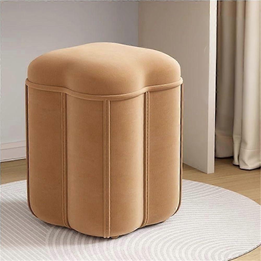 Storage Ottoman Vanity Stool with Hidden Storage, FourLeaf Clover Footrest Chair for Living Room Bedroom Brown 37cm
