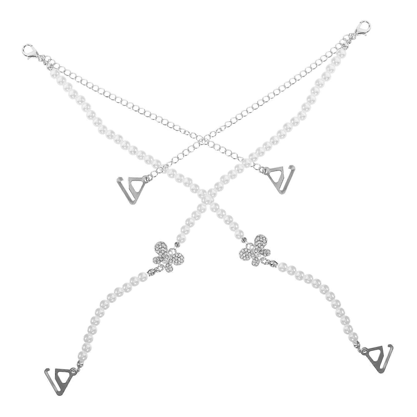 Elegant Adjustable Pearl and Butterfly Bra Straps for Women with Hook Closure for Dresses