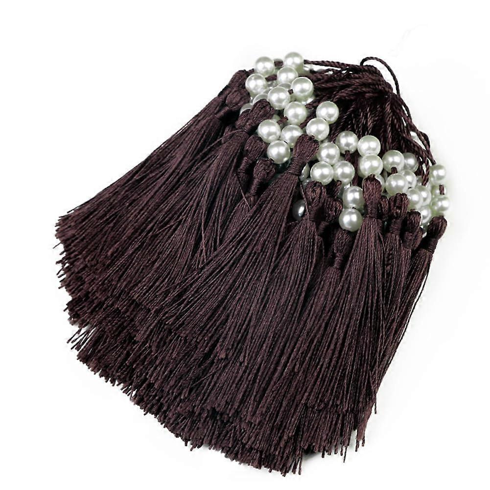 100 PCS Pearl Silky Bookmark Tassels Bulk for DIY Crafts Jewelry Making with Hanging Loop Coffee
