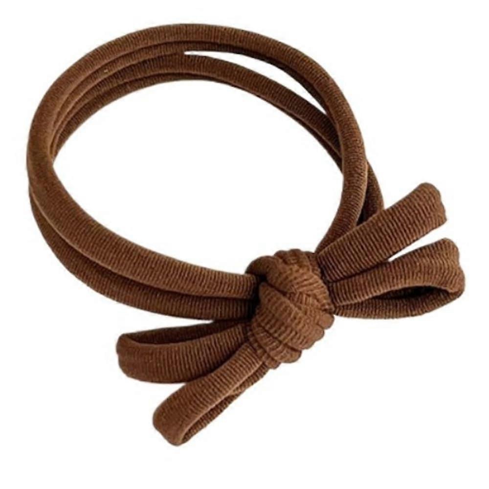 Elastic Bow Hair Tie Seamless Towel Cotton Hair Bands Coffee Color 5 Pack for Women