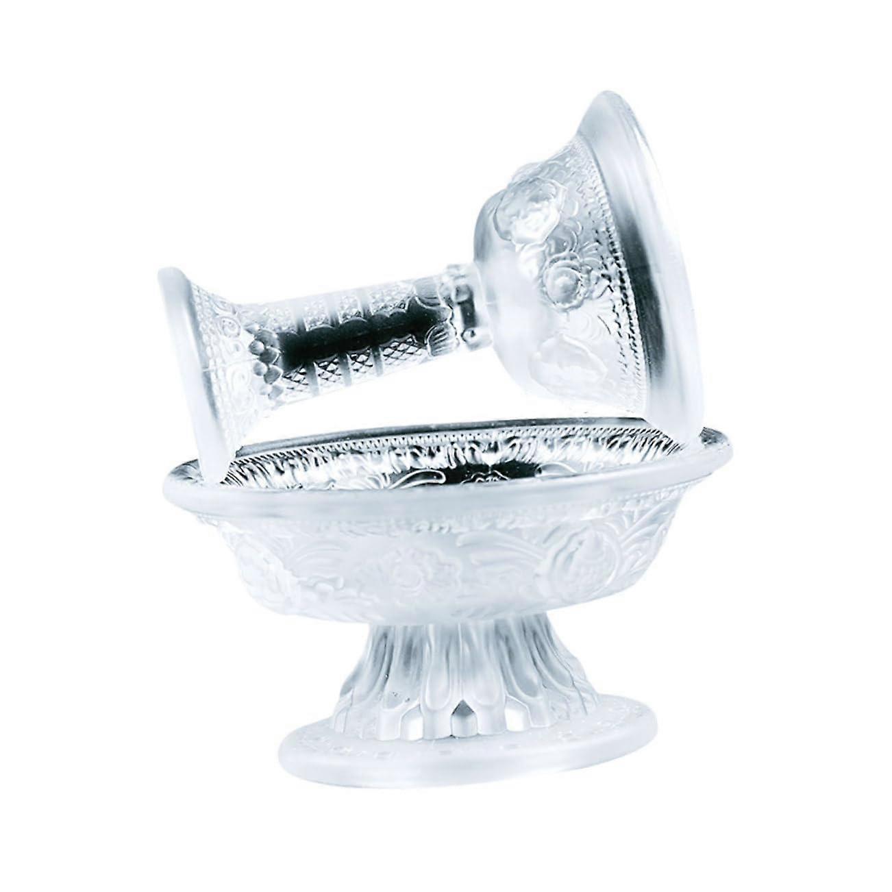 2pcs Transparent Glass Buddhist Offering Bowls with Footed Base for Temple Ritual and Worship