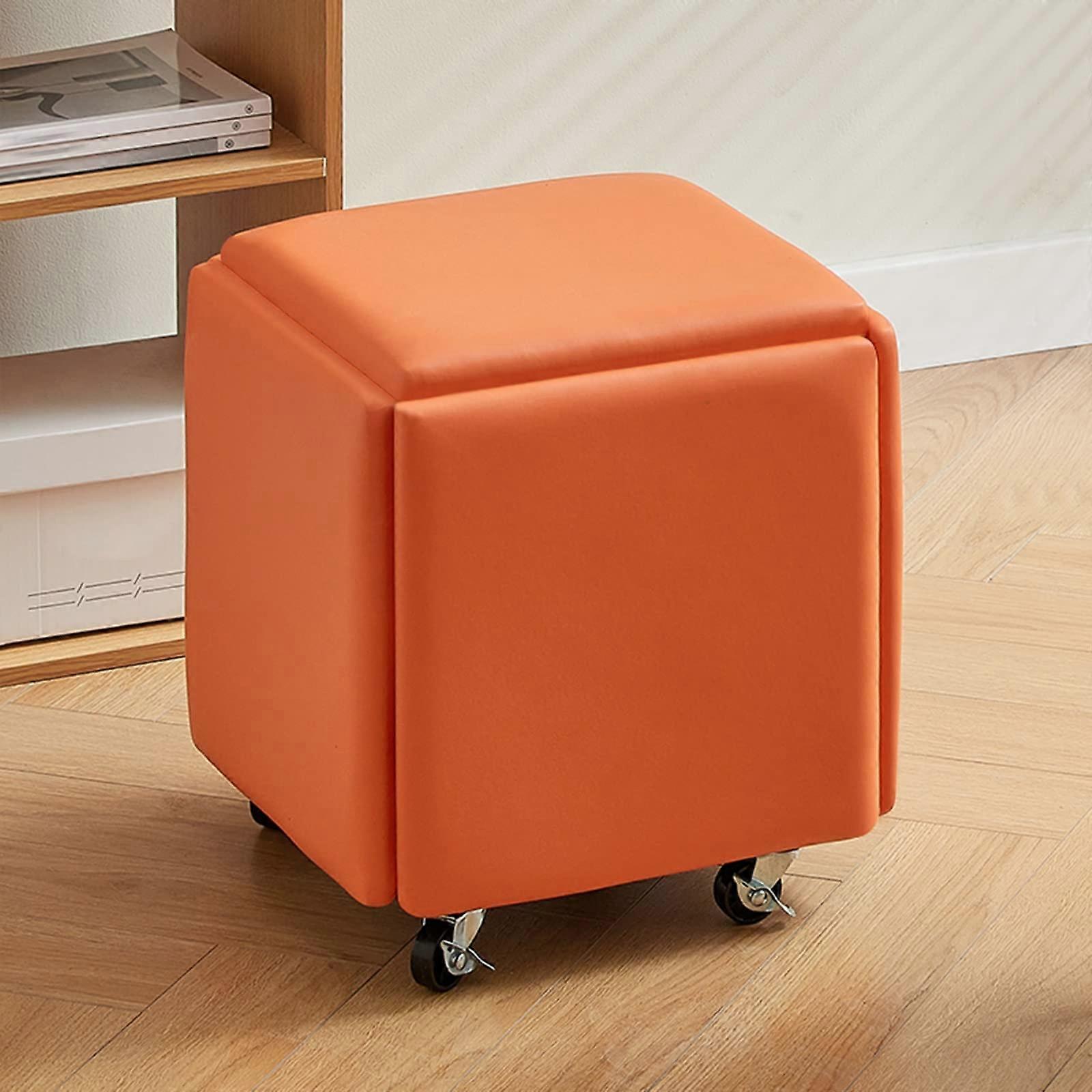 5 in 1 Stackable Ottoman Set with Wheels, Leather Cube Storage Bench for Living Room and Bedroom