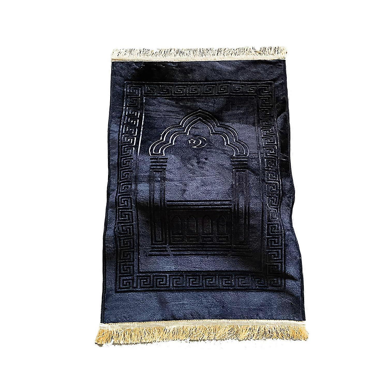 Extra Thick Velvet Prayer Mat with NonSlip Cushion for Worship and Meditation, Foldable Black Rug