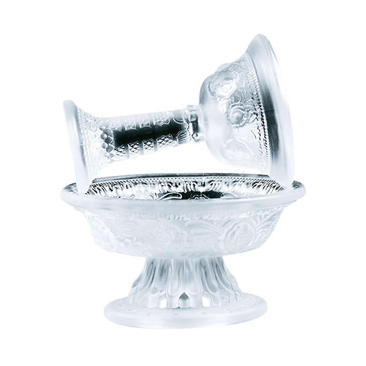 grade glass holy water offering cups and altar bowls designed for Buddhist practice — smooth, faderesistant, and versatile. Key benefits Keeps offerings clear and presentable: made from grade glass with a smooth surface and faderesistant finish to maintain appearance over time. Versatile and functional: works as a Buddhist glass water offering cup, altar bowl, temple cup, oil lamp cup, water supply cup, or general offering cup. Suitable for sacred and decorative use: unique appearance enhances the altar while serving practical ritual needs. What makes it stand out Durable glass construction that resists fading and preserves a clean, transparent look. Smooth, nonporous surface appropriate for repeated use during ceremonies and daily devotional practice. Thoughtfully shaped as an altar bowl to combine functionality with attractive temple decor. Compatibility and performance Purposebuilt for Buddhist altars, temples, home shrines, and ceremonial use. Reliable for holding water, oil for lamps, or small offerings without affecting presentation. Stable form and clear finish offer consistent performance for ritual tasks. Practical use scenarios Daily home shrine: use as a holy water Buddhist bowl for morning and evening offerings, keeping water visible and presentable on the altar. Ritual ceremonies at a temple or monastery: serve as an altar bowl or oil lamp cup during chanting and group ceremonies. Functional decor on the altar: use as a water supply cup or small offering cup for flowers, rice, or symbolic items while enhancing the altar's visual harmony. Care notes Rinse gently with water and dry with a soft cloth to maintain clarity and finish. Store on a stable surface when not in use to protect the glass ornament from accidental damage. Functions included Holy water offering cup, Buddhist glass water offering, altar bowl, temple cup, oil lamp cup, water supply cup, offering bowl.