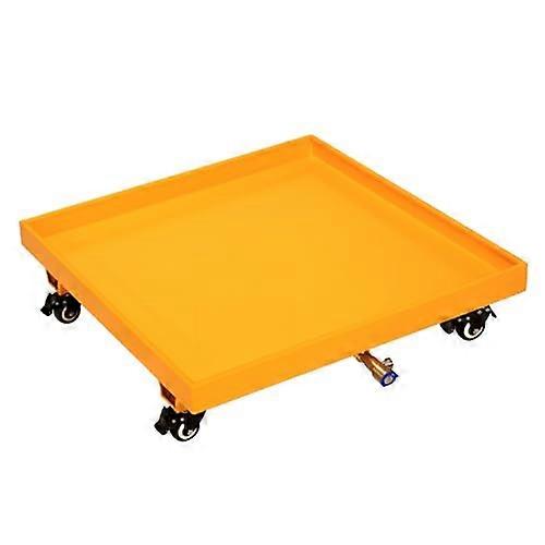 Oil Spill Containment Pallet with Drain Outlet, HeavyDuty Leakproof Tray for Industrial Use, Yellow Wheels 65x65x15CM