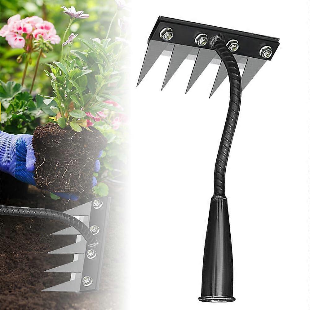 Garden Weeding Rake 2025 Upgrade 5 Teeth Carbon Steel Heavy Duty Hand Weeder with Ergonomic Handle