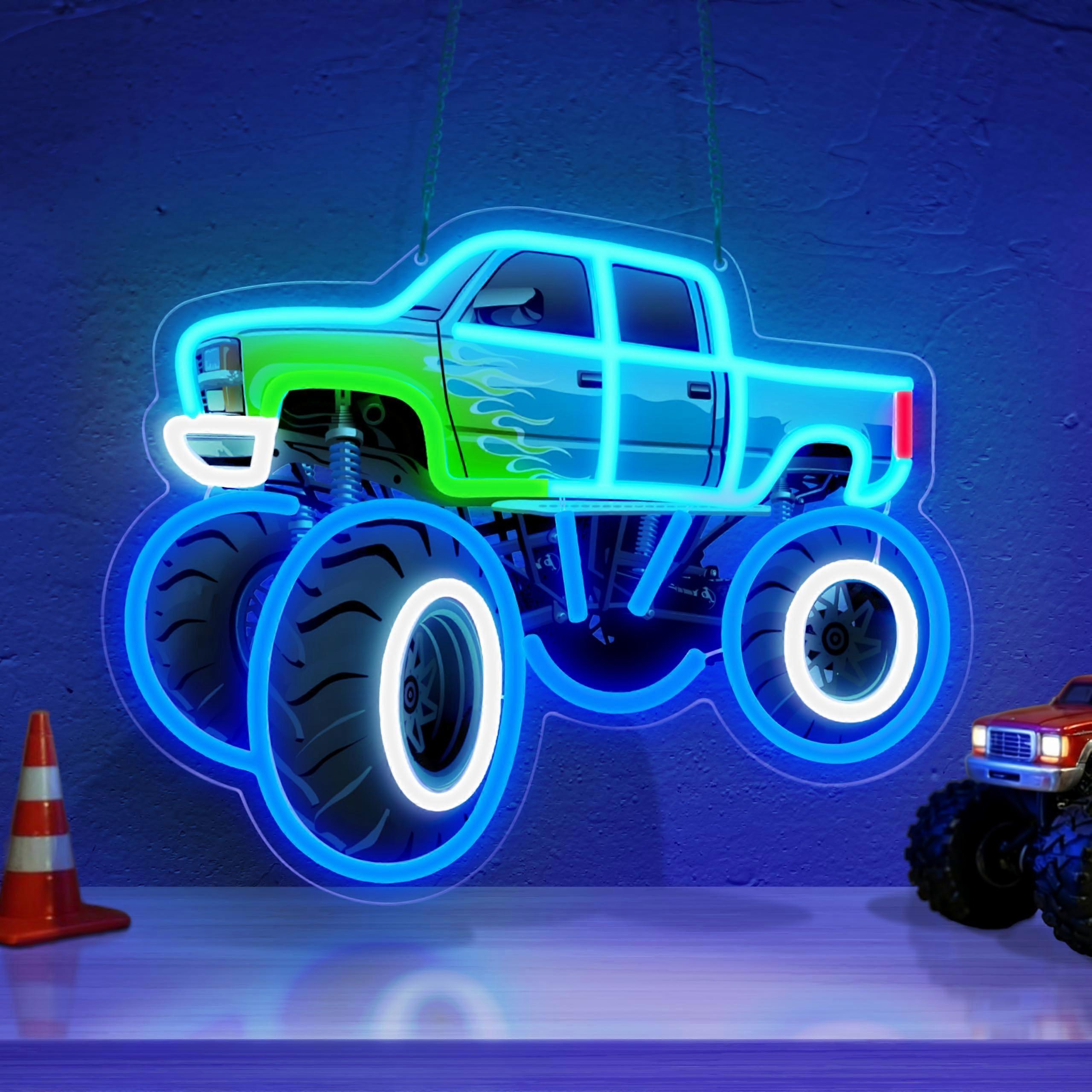 Monster Truck Neon Sign with Adjustable Brightness, LED Car Wall Decor for Bedroom, Garage, Party, Blue