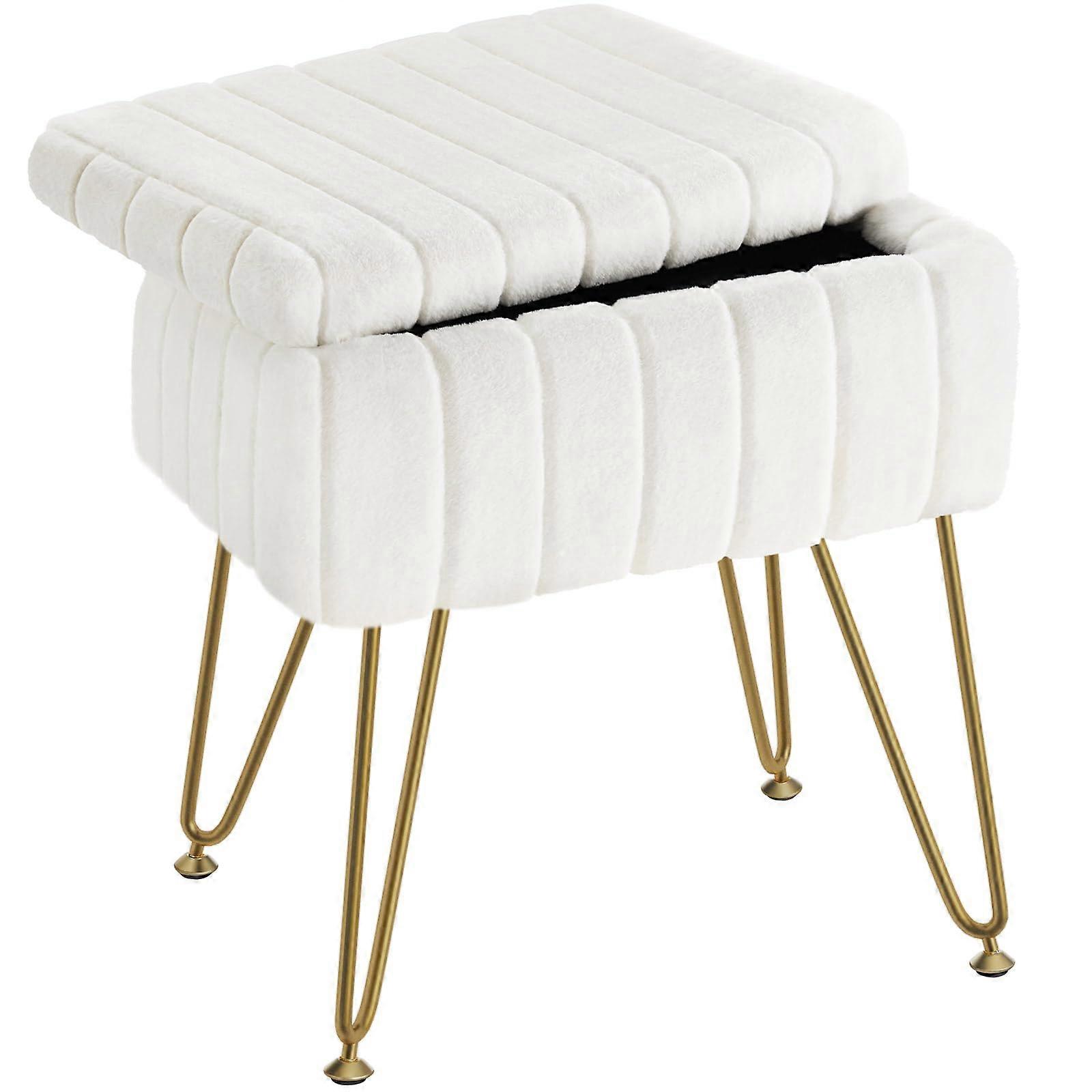 Vanity Stool with Hidden Storage Soft Faux Fur Seat Sturdy Metal Legs for Makeup Bedroom White