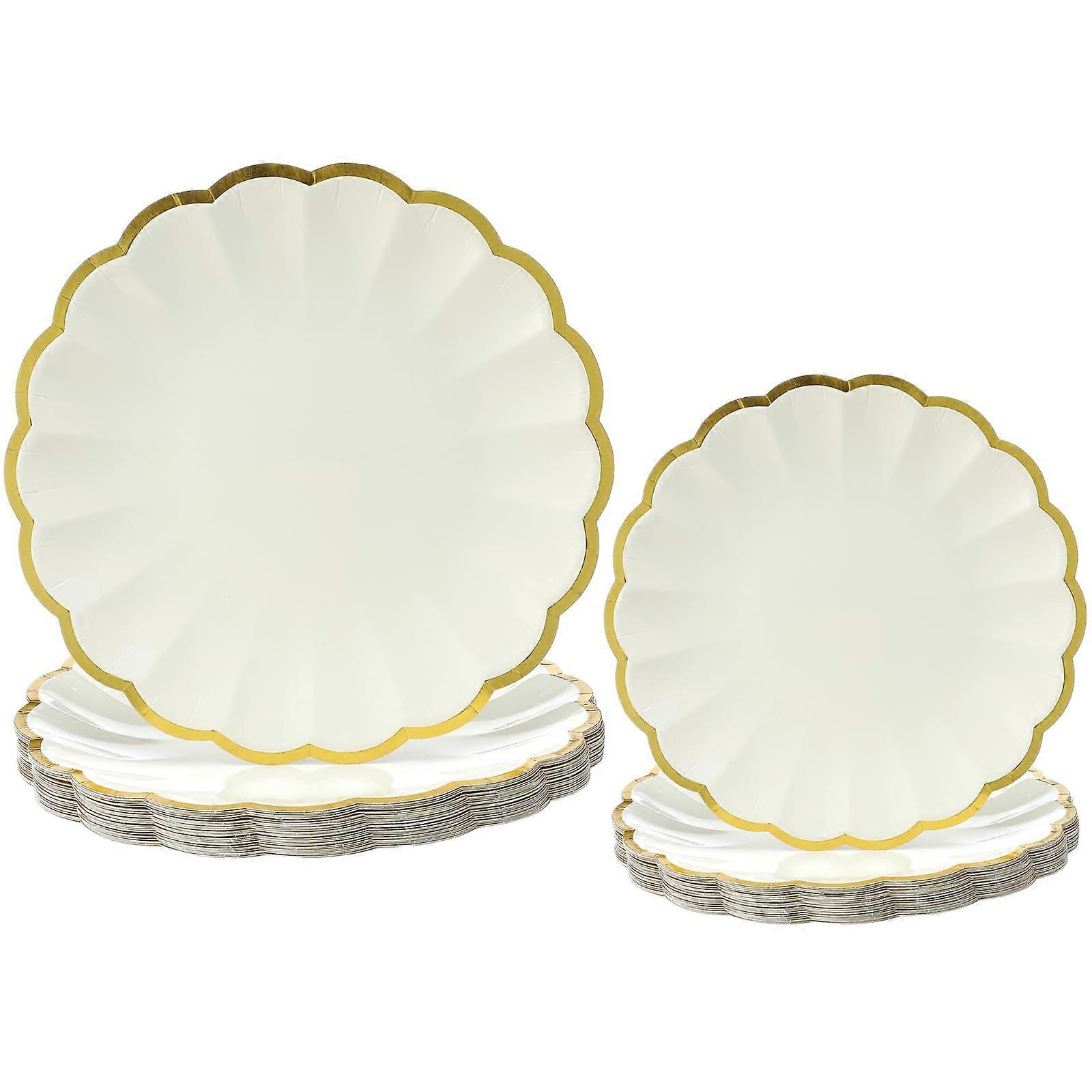 60 Pcs Gold Paper Plates with Elegant Gold Edge, Cream Scalloped Design, 9.5 and 7.5 Inch for Wedding Birthday Baby Shower Parties