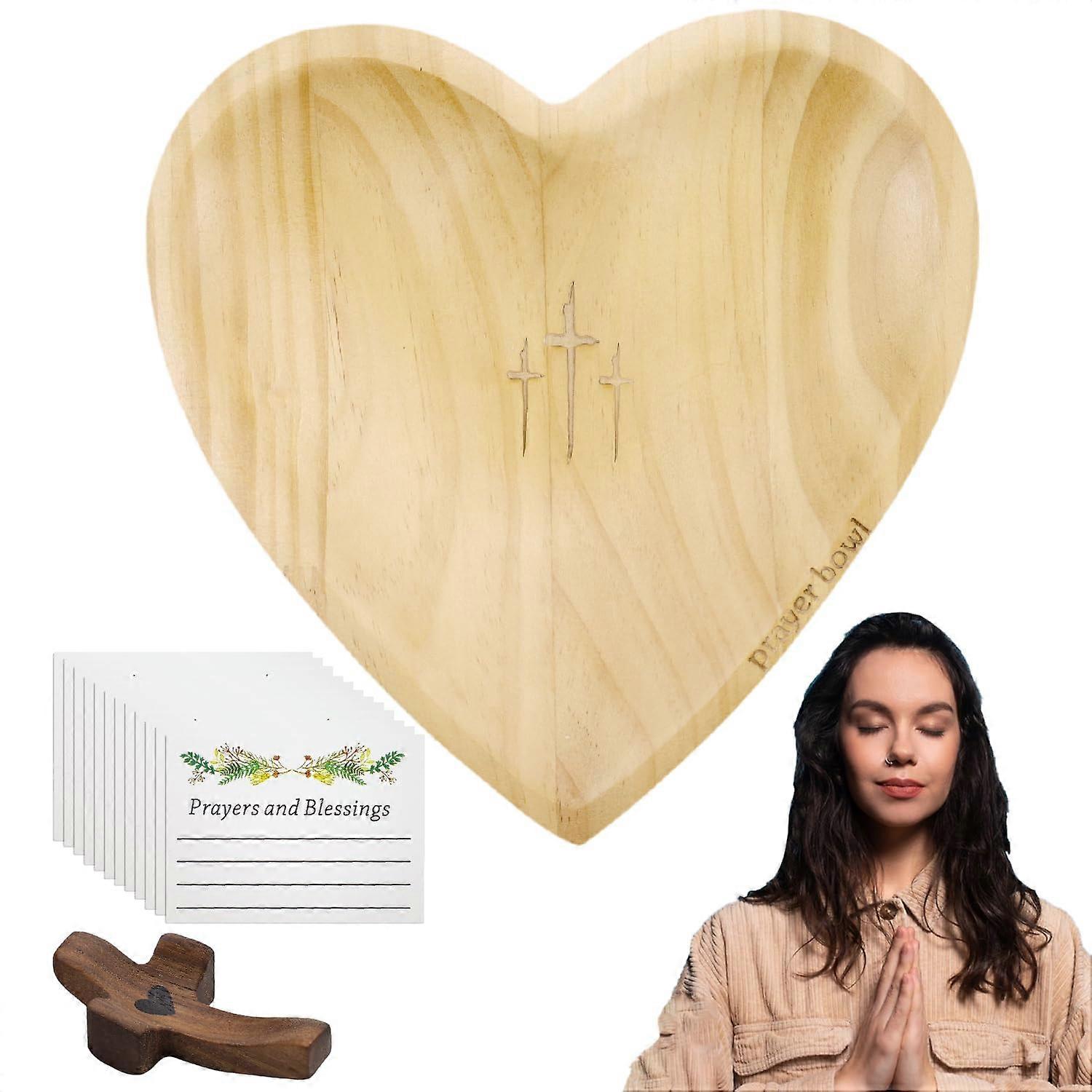 Christian Heart Shaped Wooden Prayer Bowl with Cross and 24 Prayer Cards, Spiritual Gift for Women