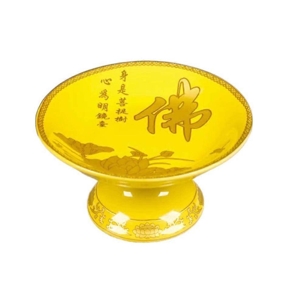 18.5cm Ceramic Tribute Plate for Buddha Temple Fruit Offering Retro Religious Ceremony Decor