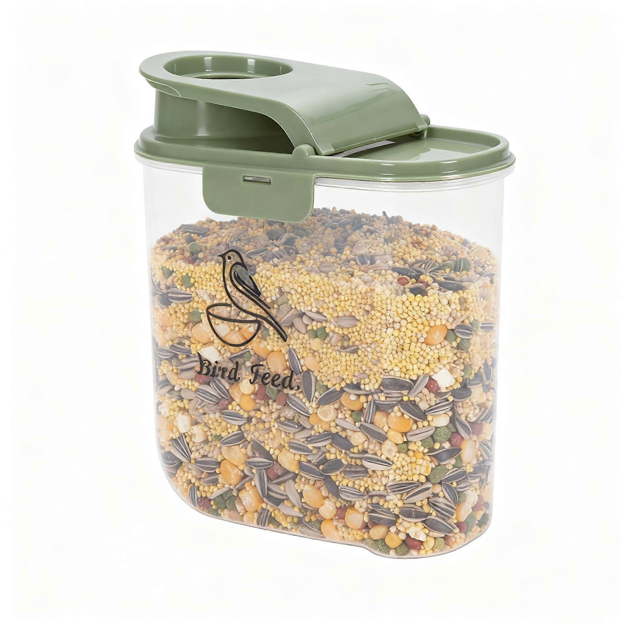 Bird Seed Storage Container 2.1 Qt Airtight Locking Seal with Pour Spout BPA for Sunflower Seeds Green