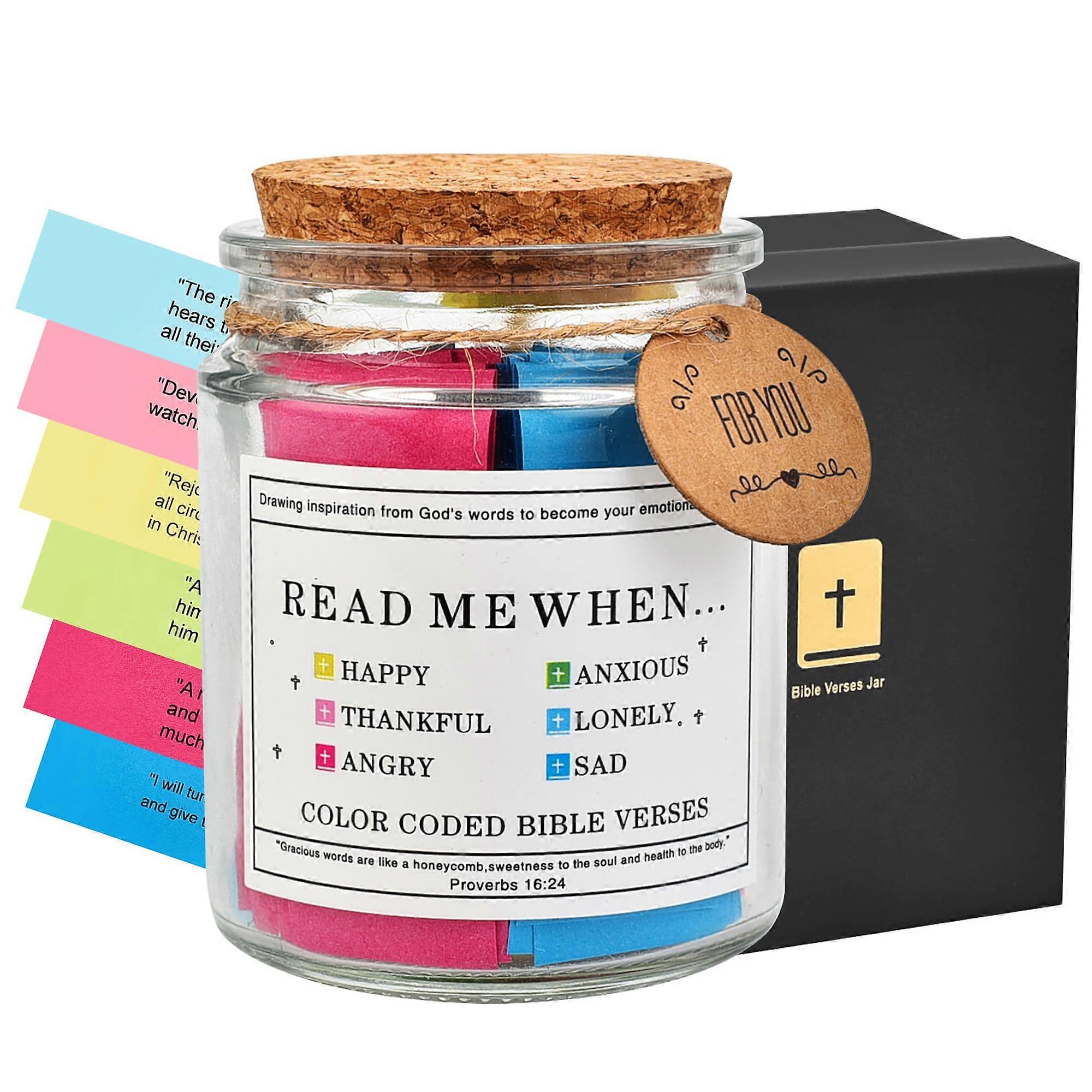 Bible Verse Jar Christian Gift with Inspirational Scripture Cards for Women and Men, MoodBased Verses