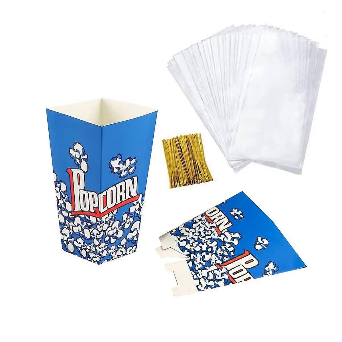 Popcorn Boxes 50PCS Blue Cardboard Popcorn Containers with Clear Bags for Party and Carnival Decorations