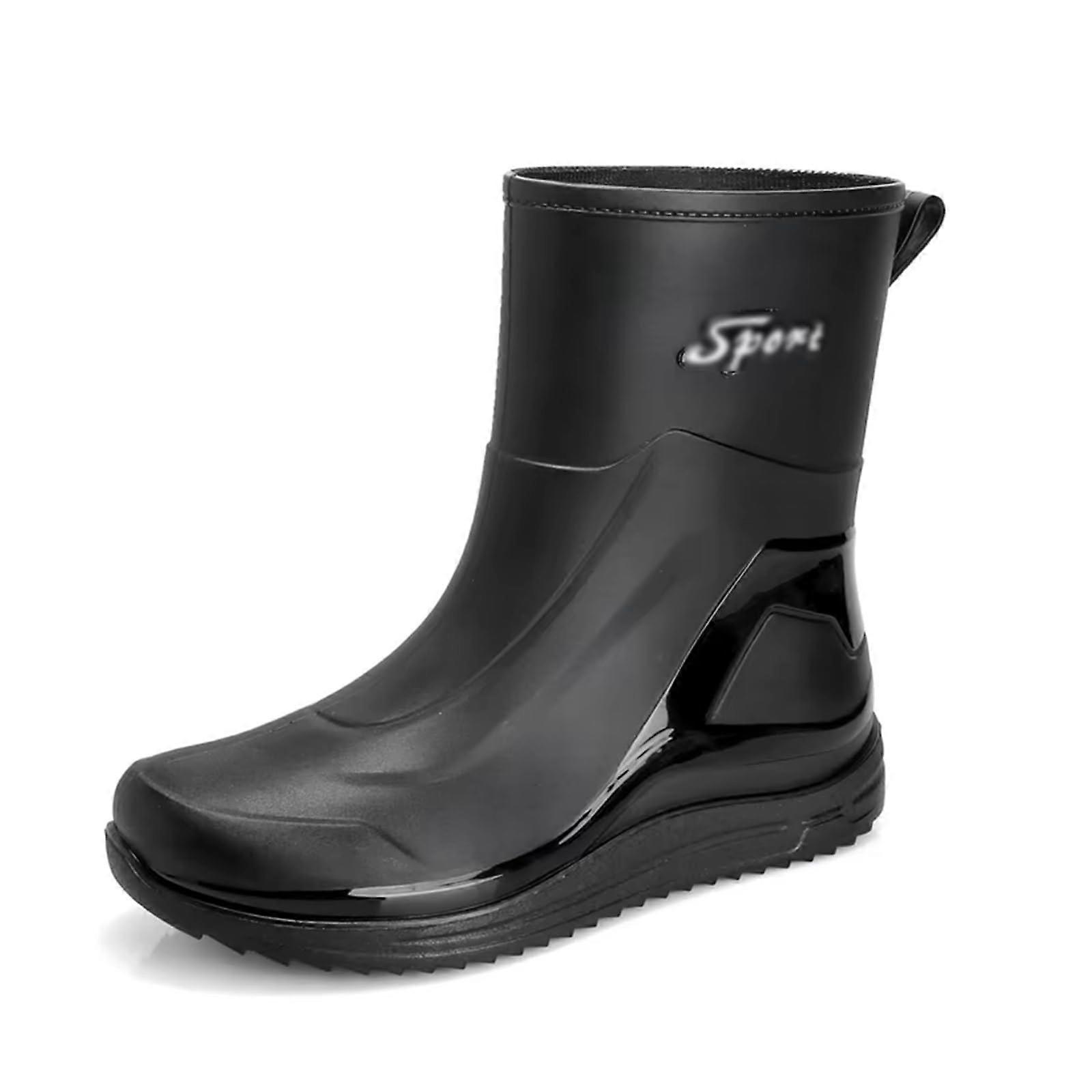 Men's MidCalf Waterproof Rubber Fishing Boots Stay dry, comfortable, and protected in any weather with these durable midcalf rubber fishing boots. Designed for outdoor enthusiasts and everyday wear, they combine waterproof performance, slip resistance, and lasting comfort for allday use. Key Features: Soft and Comfortable Fit Made with flexible rubber that is softer and more adaptable than ordinary materials, these boots naturally rebound with every step to reduce fatigue. They maintain their shape over time while offering a cushioned feel for continuous comfort. 100% Waterproof Protection Constructed from waterproof rubber, these boots keep your feet completely dry even in heavy rain or wet conditions. The material also delivers thermal insulation to help maintain warmth, while allowing adequate airflow to prevent overheating. Stylish and Functional Design Midcalf height provides ample coverage from splashes and debris while maintaining a sleek, modern appearance. The simple yet fashionable design suits both work and leisure activities. A convenient slipon style makes them quick and easy to put on and take off. AntiSlip Performance Durable molded outsoles feature a textured grip that delivers traction on wet, muddy, or uneven surfaces. The slipresistant sole design helps prevent accidents and ensures stability. Selfcleaning tread patterns minimize mud buildup. Reinforced Toe and Heel Added protection at key impact points enhances durability and safeguards against wear, making these boots reliable for tough outdoor conditions. Practical Use Scenarios: 1. Fishing Trips Keep feet dry while standing, wading, or working near water, with secure footing on wet docks and shorelines. 2. Gardening and Yard Work Protect your feet from mud, water, and uneven terrain while enjoying lasting comfort during extended outdoor activity. 3. RainyDay Commutes or Outdoor Tasks Stay comfortable and surefooted when walking through puddles, wet streets, or slippery paths. Material: flexible waterproof rubber Height: Midcalf Closure: Slipon design Outsole: Molded, slipresistant, selfcleaning tread Toe and heel: Reinforced for durability and protection These men's midcalf waterproof rubber fishing boots are built for reliability, comfort, and performance in wet and demanding environments, offering a versatile solution for work and leisure outdoors.