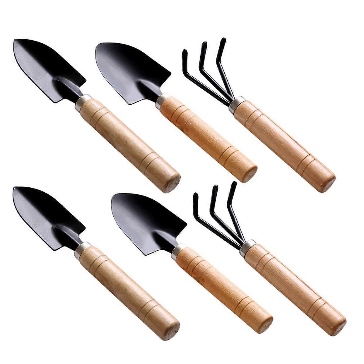 6 Pcs Mini Gardening Tools Set with Wooden Handles for Indoor Plants Soil Loosening and Transplanting