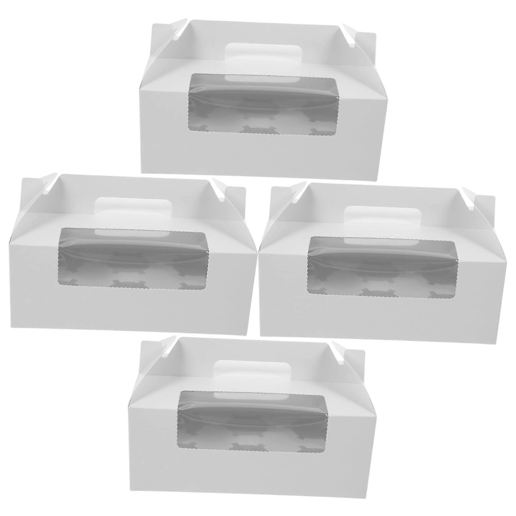4pcs White Cupcake Boxes with Transparent Window for Bakery and Parties Easy to Assemble Safe Material