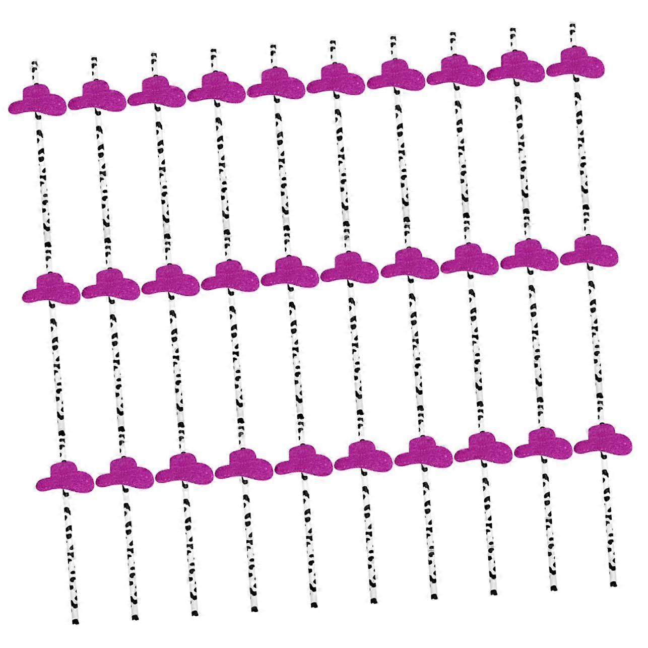 30pcs Cow Print and Pink Hat Party Paper Straws for Birthday Drinks and Themed Celebrations