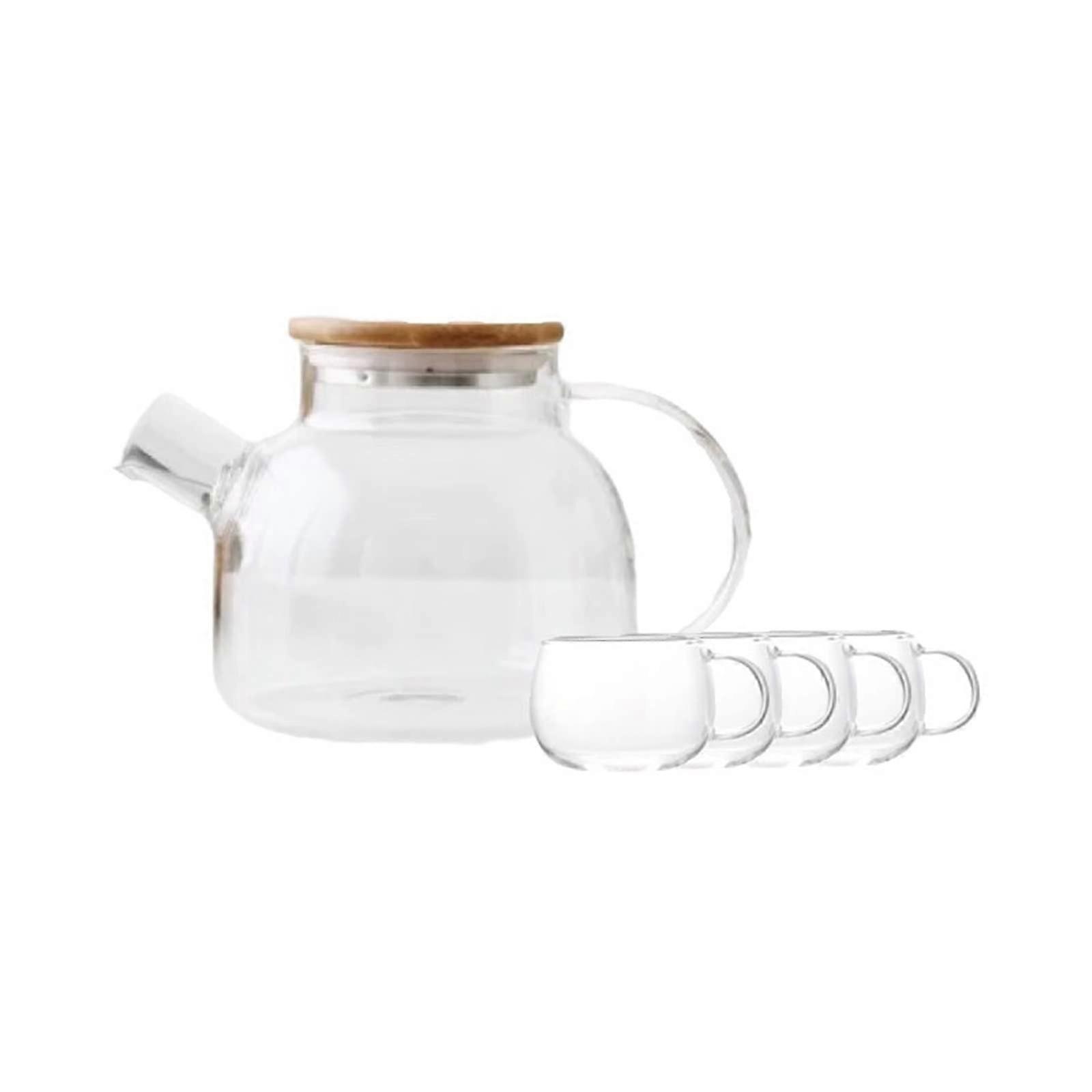 Glass Water Pitcher Set 1L Heat Resistant Glass Jug with Lid and 4 Cups for Hot and Cold Drinks