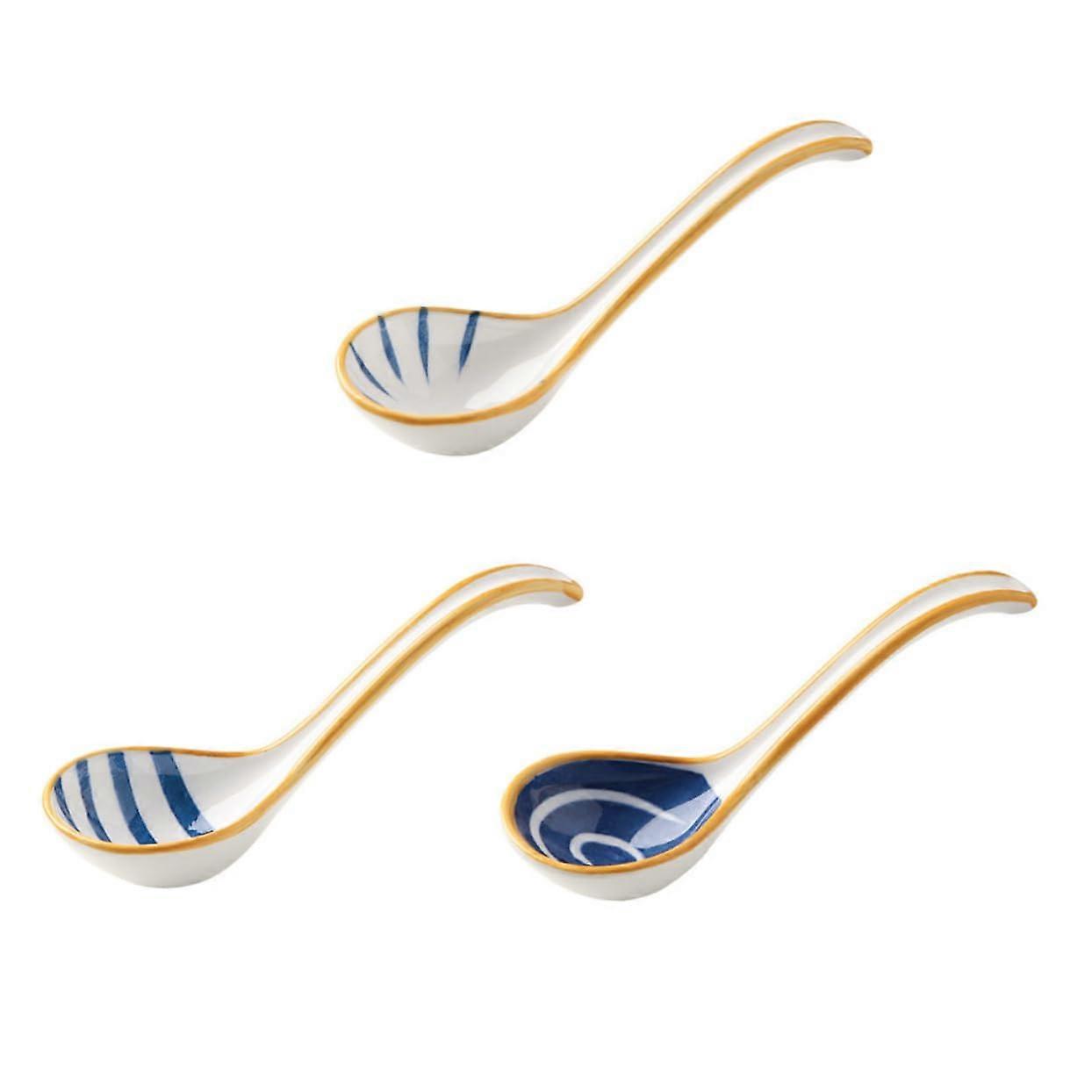 3pcs Japanese Ceramic Soup Spoon Set, HandPainted Retro Design with Glossy Finish for Ramen