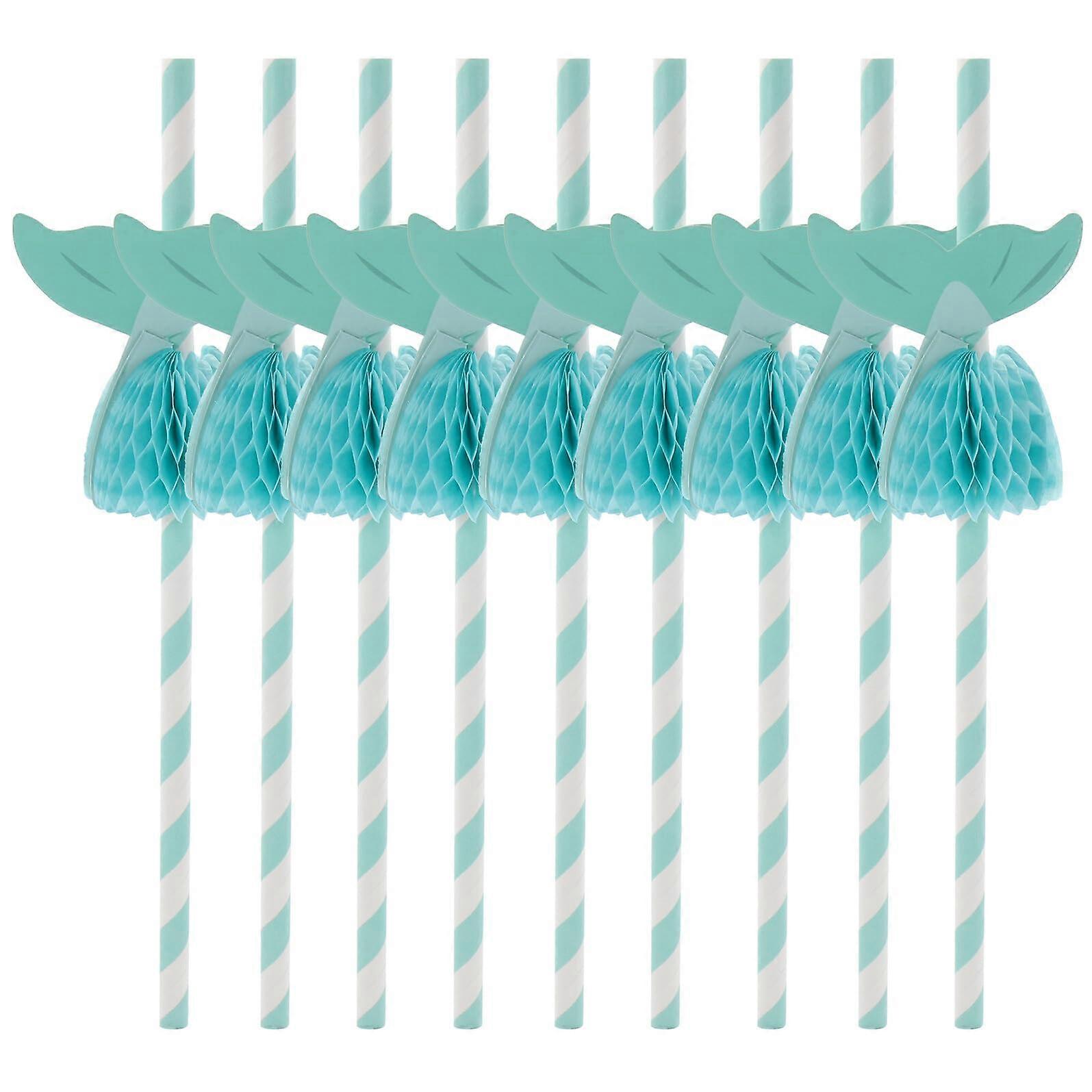 50pcs Mermaid Paper Drinking Straws Tropical Hawaiian Cocktail Biodegradable Party Pack