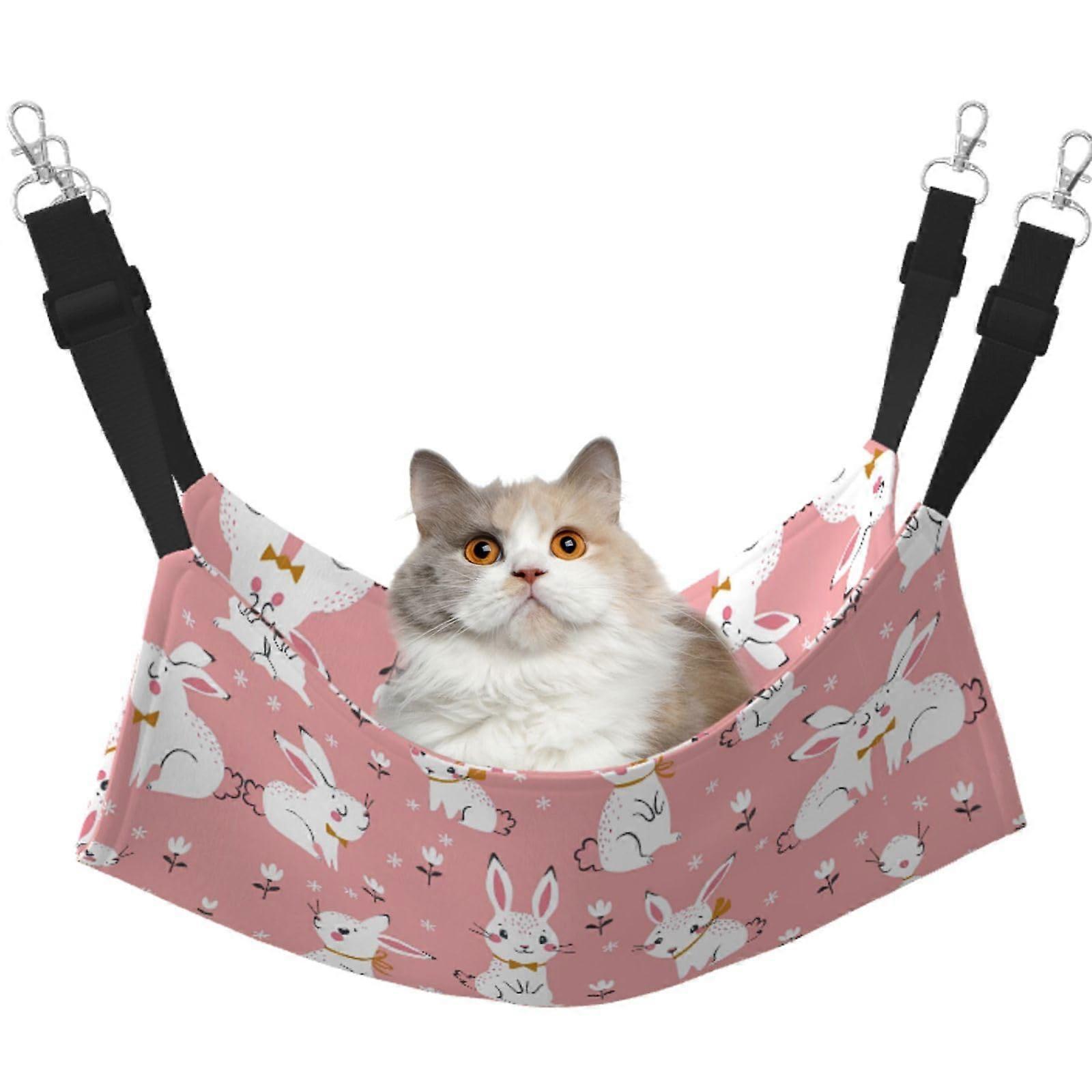 Cat Hammock for Cage with Adjustable Hanging Design, Soft Velvet Reversible Pet Bed for Small Animals