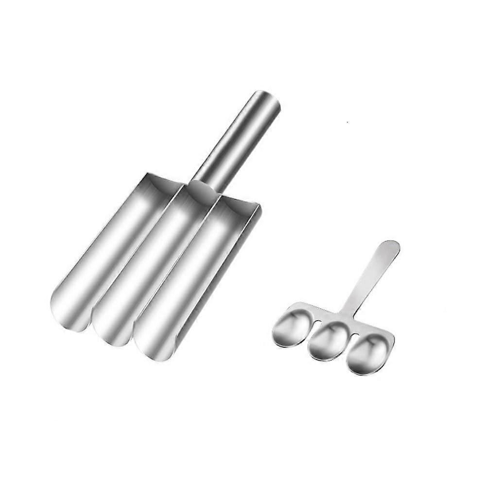 Stainless Steel Triple Meatball Maker with Spoon, Manual Meatball Scoop for Quick Kitchen Cooking
