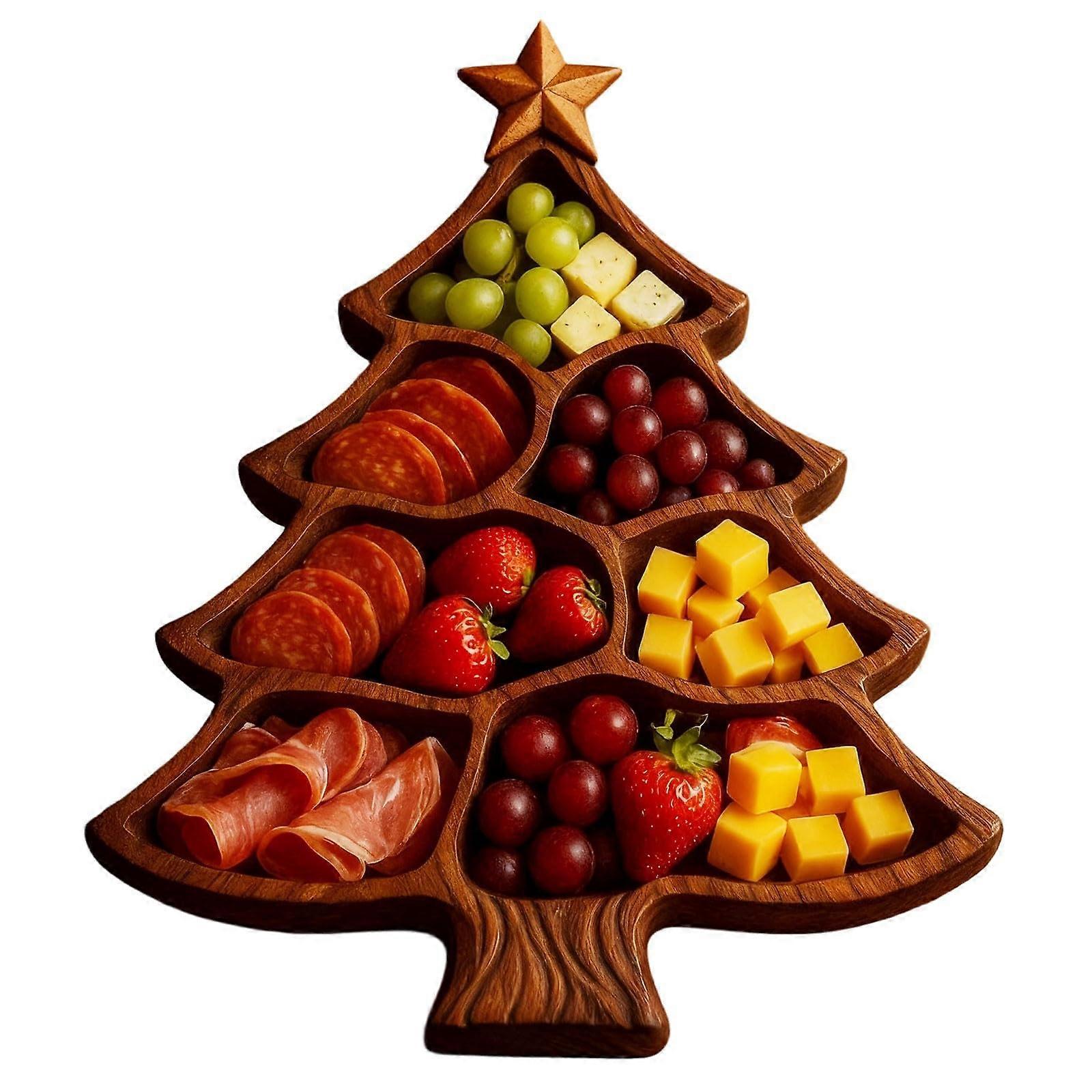 Christmas Tree Serving Platter, Wooden Charcuterie Board for Appetizers, Cheese and Snacks, Festive Tray for Holiday Parties and Home Décor (Brown)
