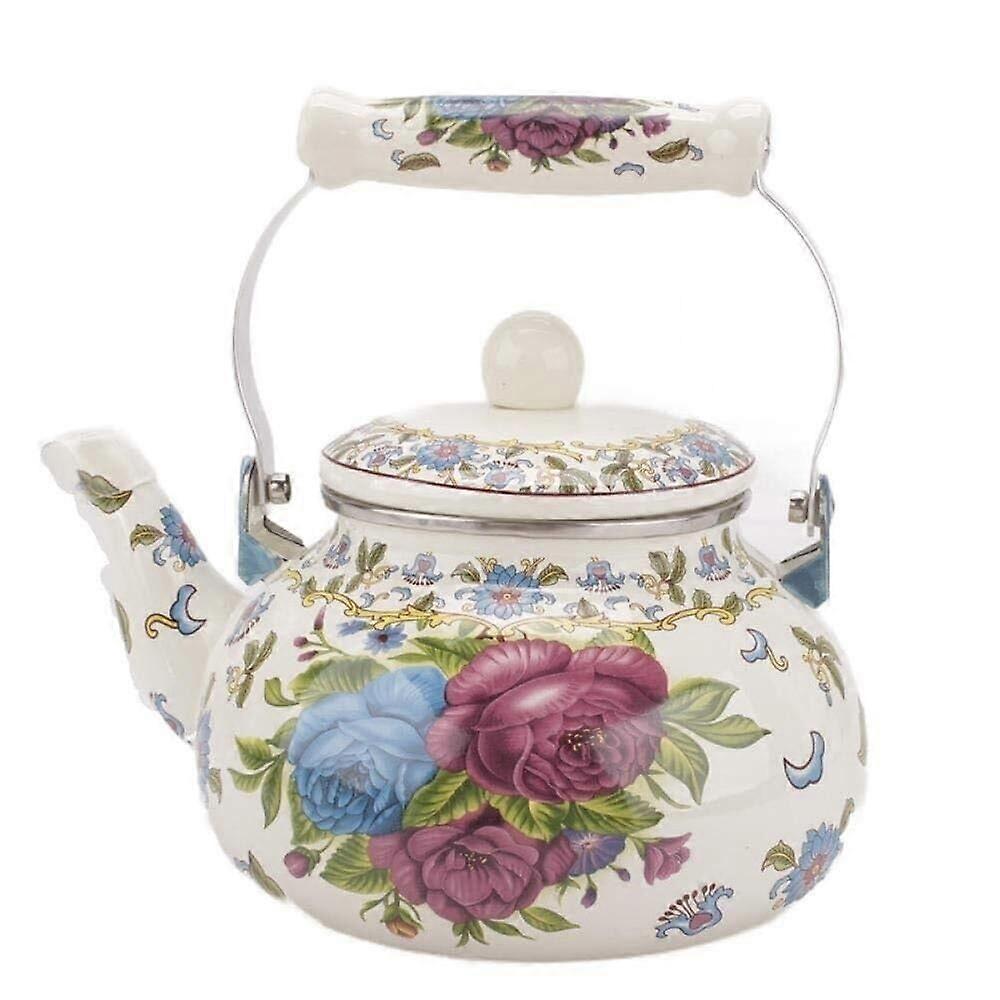 2.5L Blue Enamel Whistling Tea Kettle with Large Capacity and AntiScald Handle for Coffee