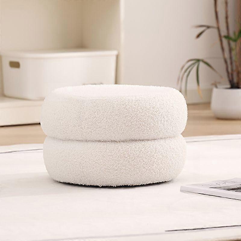 Modern Sherpa Pouf Ottoman, White Round Foot Stool for Living Room and Bedroom Decor, 13'x13'x8'