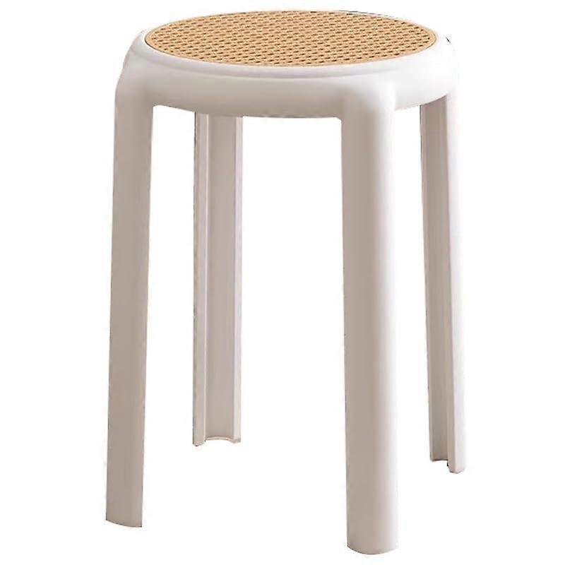 Rattan Ottoman Set of 2 White, Stackable SpaceSaving Footstool for Indoor Outdoor Seating