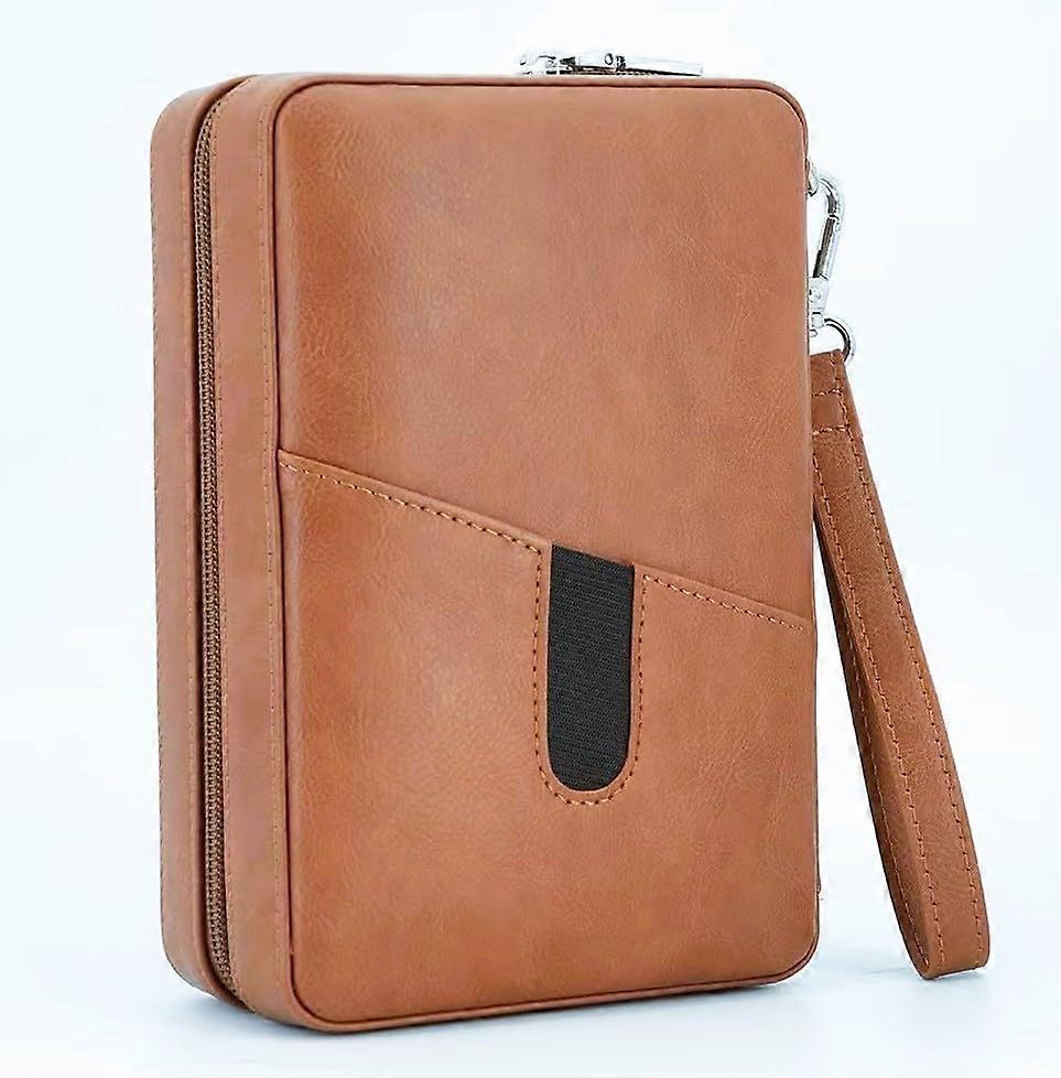 Leather and Cedar Wood Travel Humidor – Durable, Functional, and Designed for Cigar Lovers Experience the combination of elegance, performance, and practicality with this travel humidor. Crafted to protect and preserve your cigars in any setting, it offers materials, smart design features, and userfriendly convenience. Key Features and Benefits: Materials: Exterior made from quality leather for a soft, comfortable feel and a refined, timeless appearance. Interior lined with handpolished cedar wood, creating a natural, aromatic storage space that helps preserve the mellow flavor and freshness of your cigars. Humidity Control: Includes a removable humidifier to maintain humidity levels, ensuring cigars stay in condition. Airtight zipper lock design keeps moisture balanced and protects cigars from outside air exposure. Practical Design and Storage Capacity: Large capacity holds up to 6 cigars, suitable for most standard sizes. Ideal for travel, home use, or office storage, allowing you to keep your hobby wellorganized and portable. Functional Interior Layout: Cedar wood trays provide stable support. Leather straps on both sides secure cigars in place during transport. Builtin leather pocket offers space for essential accessories such as a cutter or lighter. Additional Features: Equipped with a hygrometer to monitor humidity levels at a glance. Designated space for lighter and accessories keeps everything in one place. Leather cover with carrying bracelet for easy portability. Use Scenarios: 1. Business Travel – Keep cigars fresh and wellprotected inside your luggage or carryon, ensuring you arrive with them in condition for client meetings or events. 2. Outdoor Leisure – Bring your humidor to golf outings, fishing trips, or weekend getaways for convenient enjoyment of your cigars without compromising quality. 3. Home Organization – Store your cigars and accessories neatly in one elegant case, keeping them ready for relaxation or entertaining guests. This travel humidor combines sophistication, craftsmanship, and reliable performance, making it an essential accessory for any cigar enthusiast seeking quality preservation and convenience in a portable form.