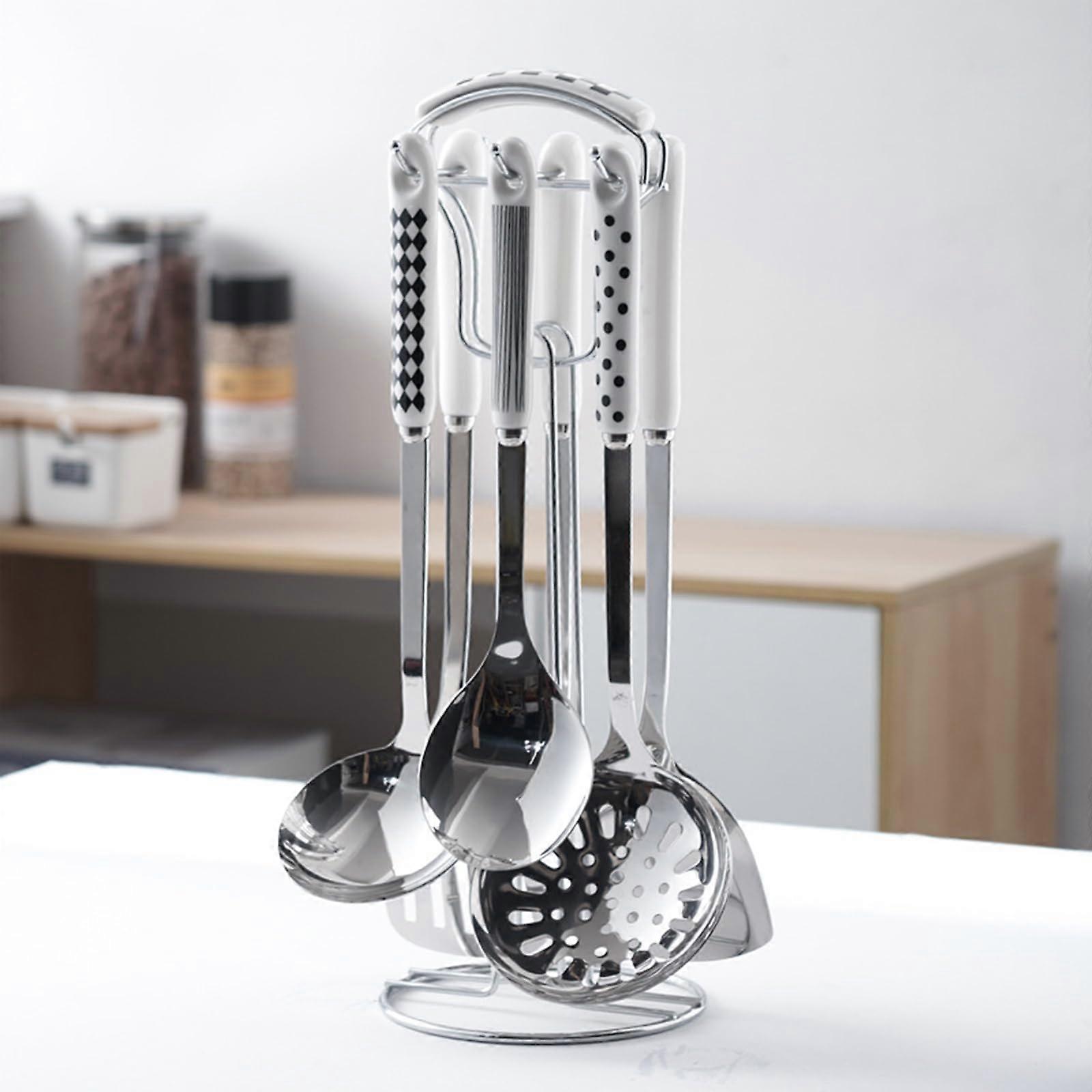 Stainless Steel Kitchen Utensils Set with Holder, 7 Piece Mirror Polished Dishwasher Safe