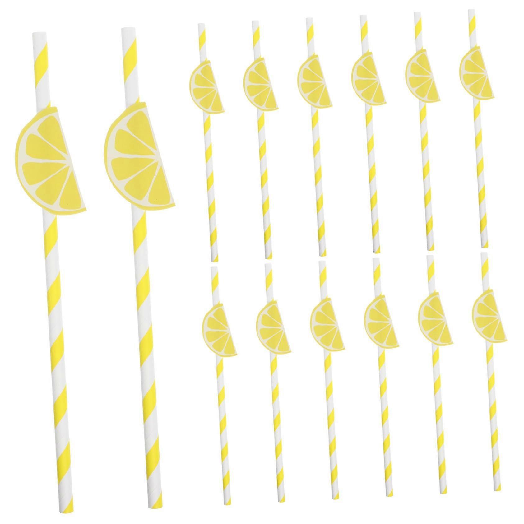 20pcs Lemon Paper Straws with Striped Design for Birthday Party and EcoFriendly Event Drinks