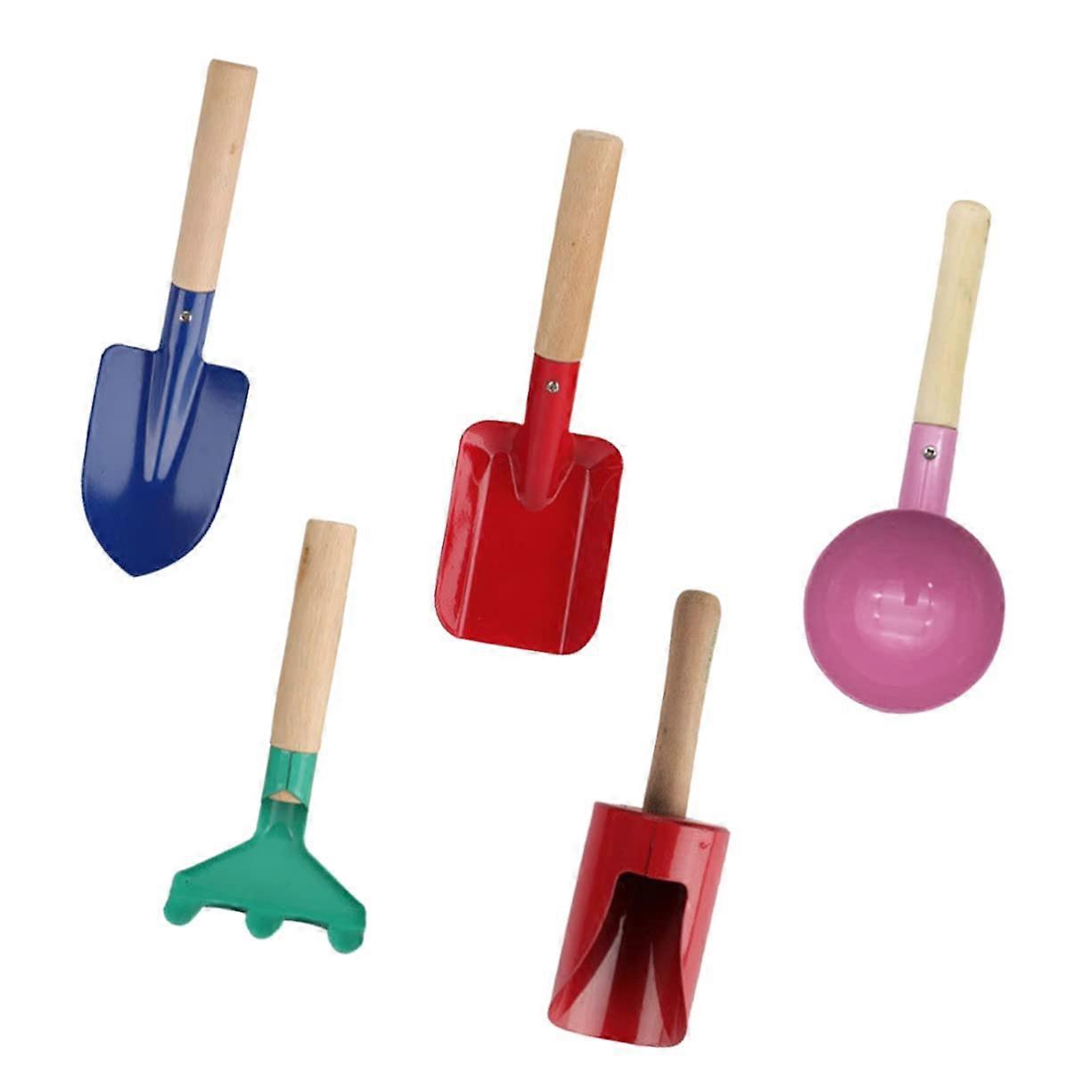 Kids Gardening Tools Set 5Piece with Shovel Rake Trowel Wooden Handle for Outdoor Fun