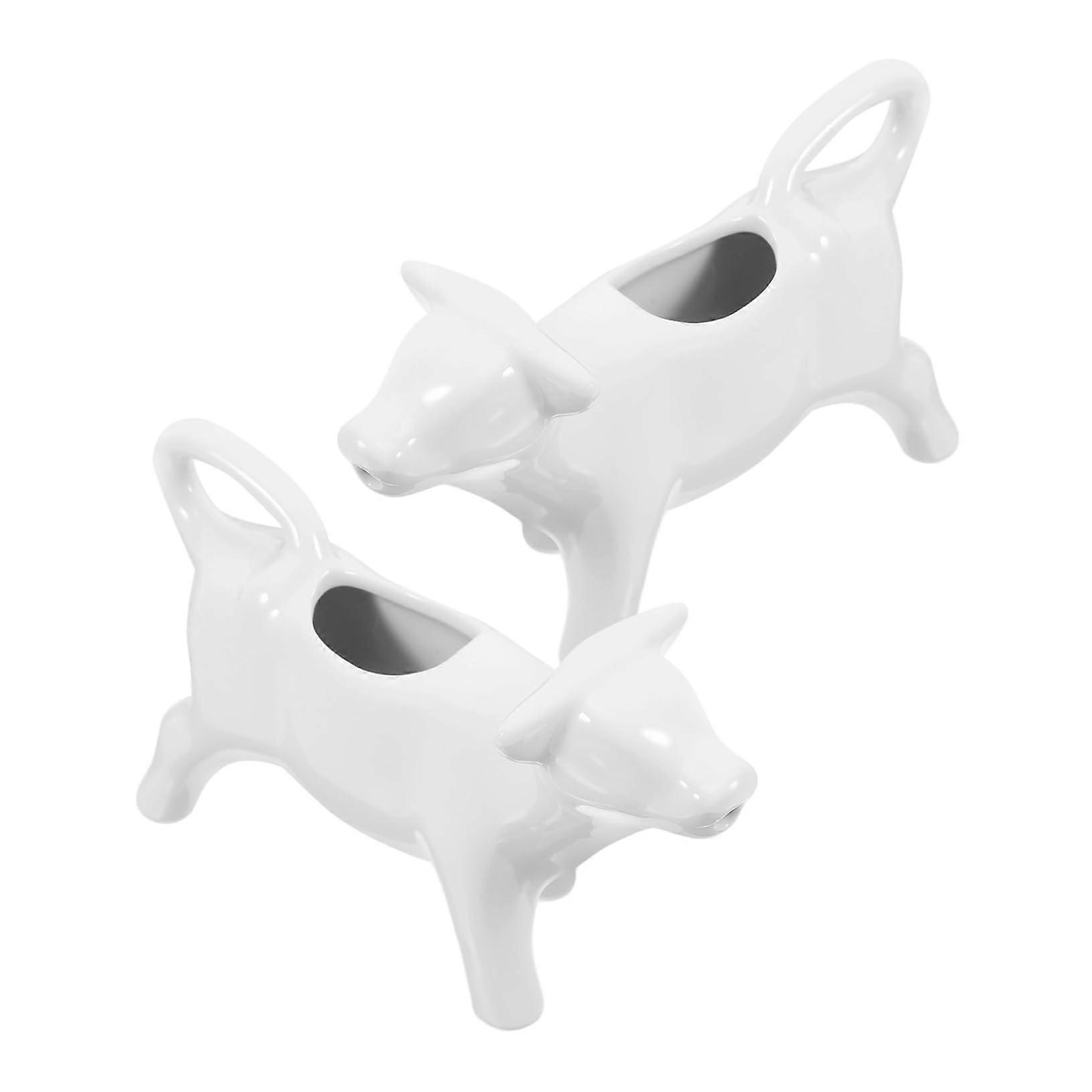 Ceramic Milk Frothing Pitcher Set 2pcs Small Cow Design Jug for Coffee and Sauce 40ml White