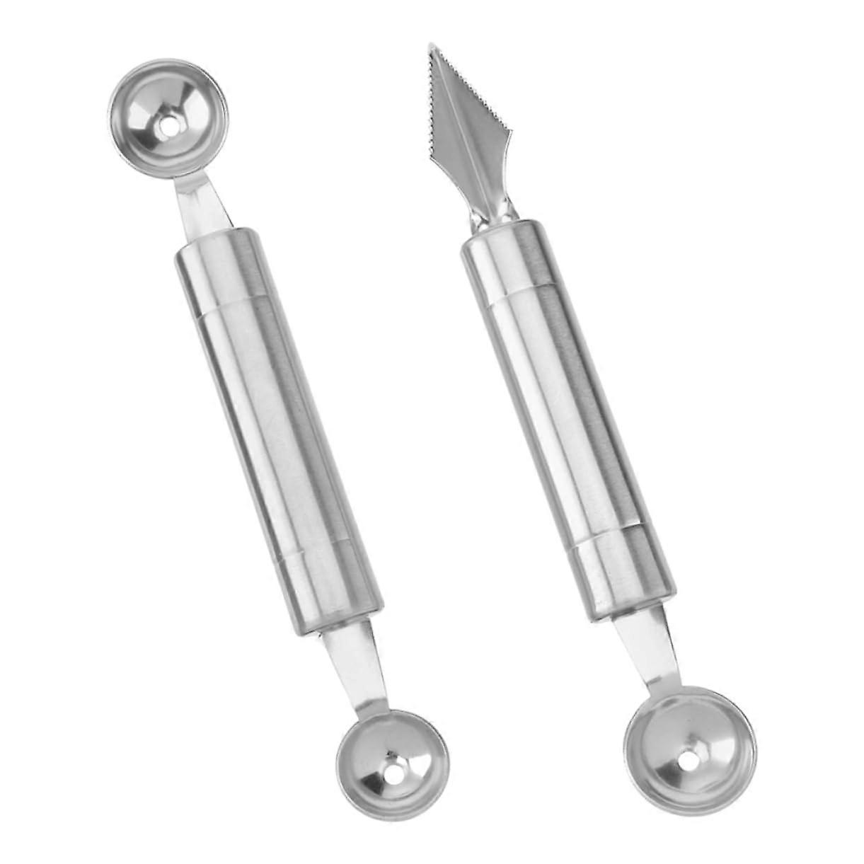 2pcs Stainless Steel Melon Baller Scoop and Watermelon Carving Knife Set with Ergonomic Grip