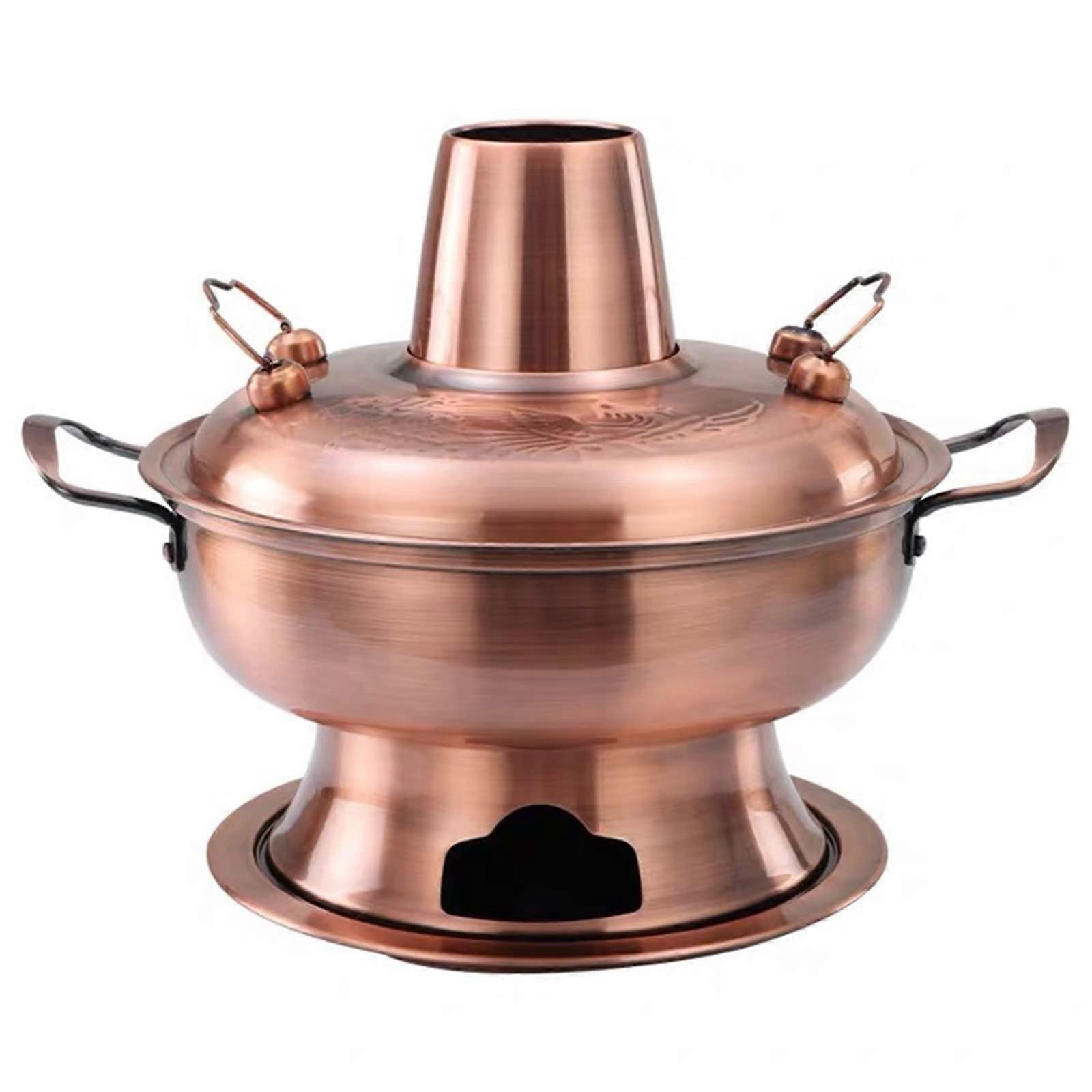 Vintage Copper Shabu Shabu Hot Pot 32cm with Charcoal Fast Heating for Home and Restaurant