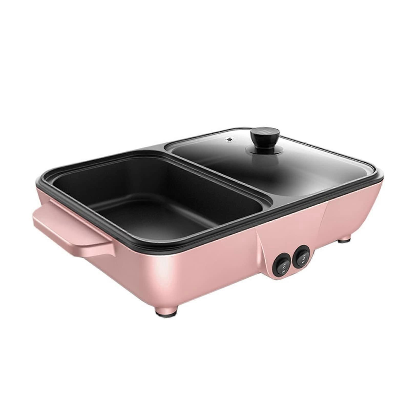 Electric Hot Pot and Grill Combo 2 in 1 Dual Temperature Control Smokeless Korean BBQ Shabu Shabu 110V