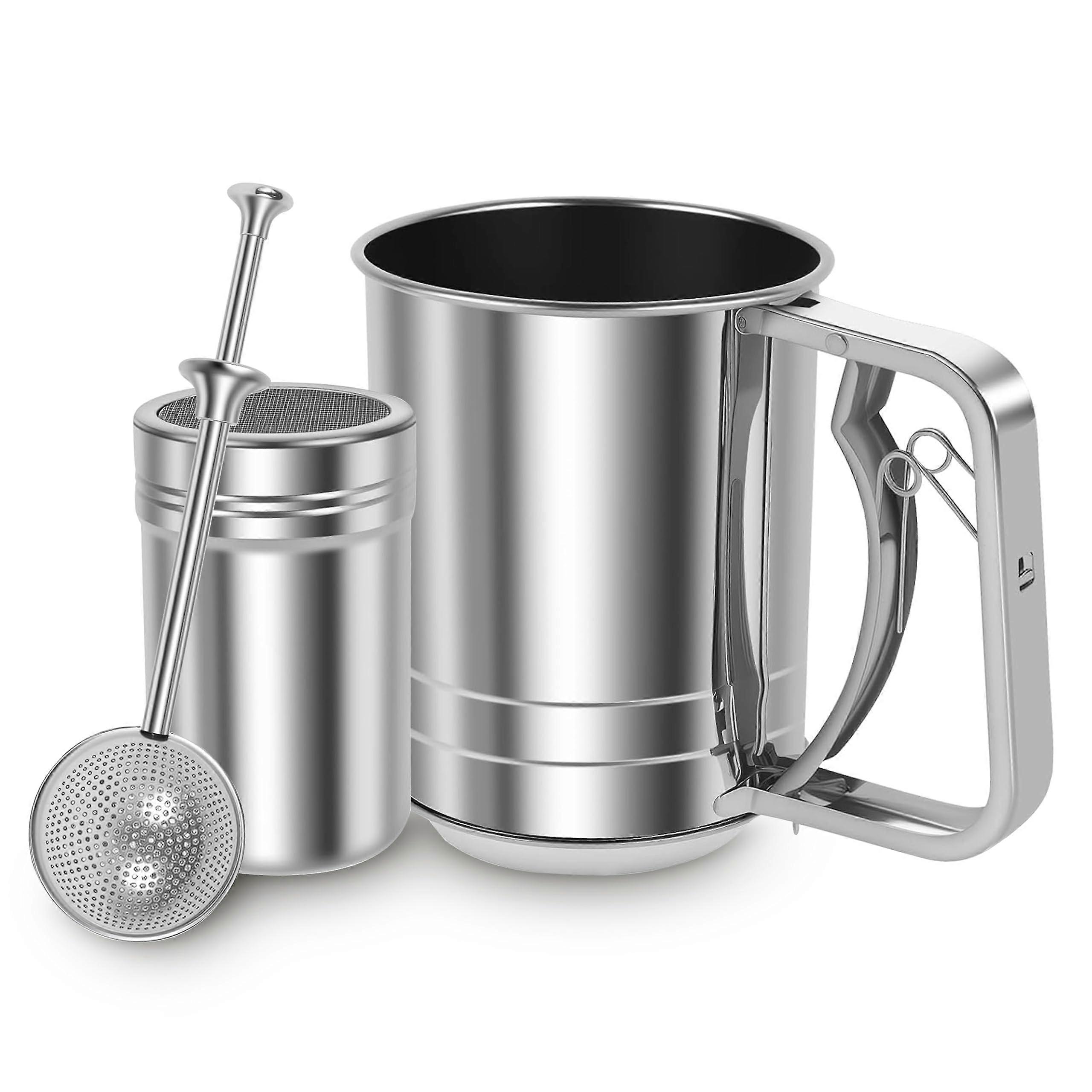 Flour Sifter Set with Powdered Sugar Duster, Stainless Steel Fine Mesh Sifter for Baking Cakes
