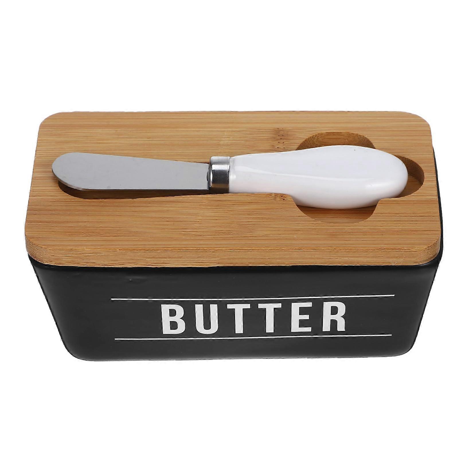 Ceramic Butter Dish with Lid and Stainless Steel Cutter, Sealed Cheese Container for Fridge