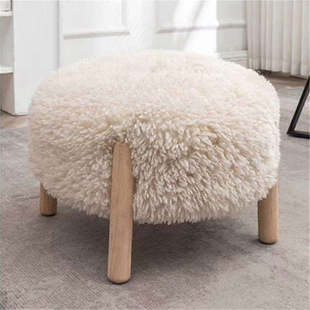 Small Upholstered Ottoman with Soft Cushion and Wooden Legs for Living Room or Bedroom