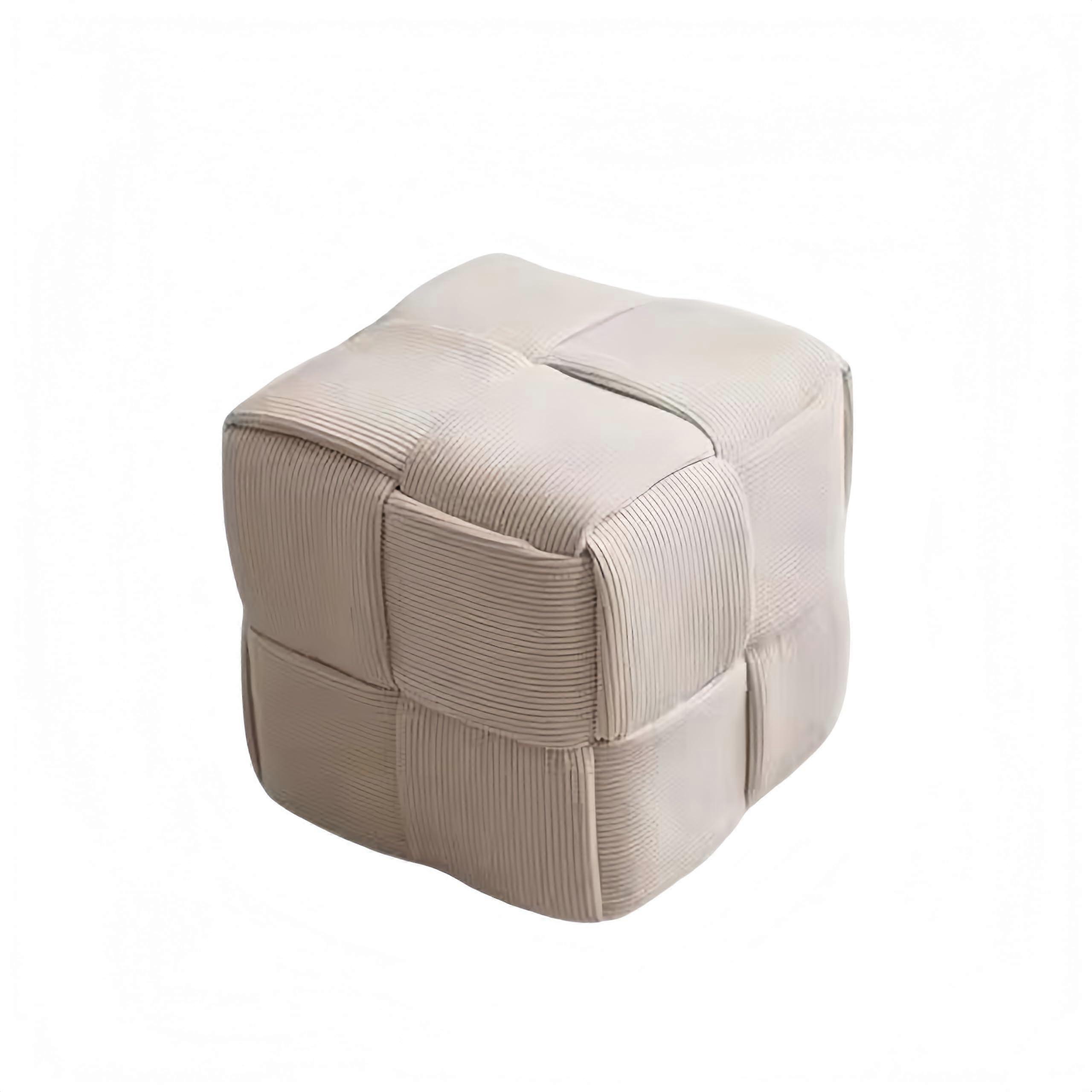 Ottoman Footstool Warm White Square Corduroy Upholstered Seat with Foam Padding Supports 220 lbs