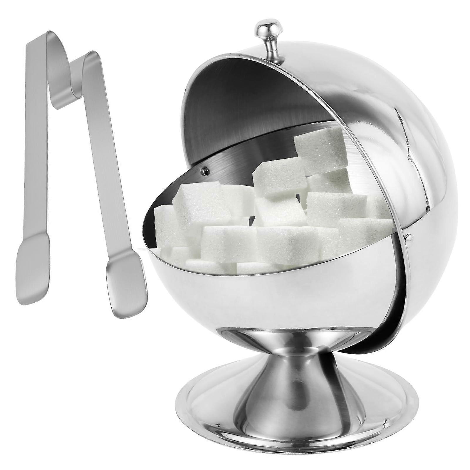 Stainless Steel Sugar Bowl with Roll Lid and Tongs, Silver Candy Jar for Kitchen Coffee Bar