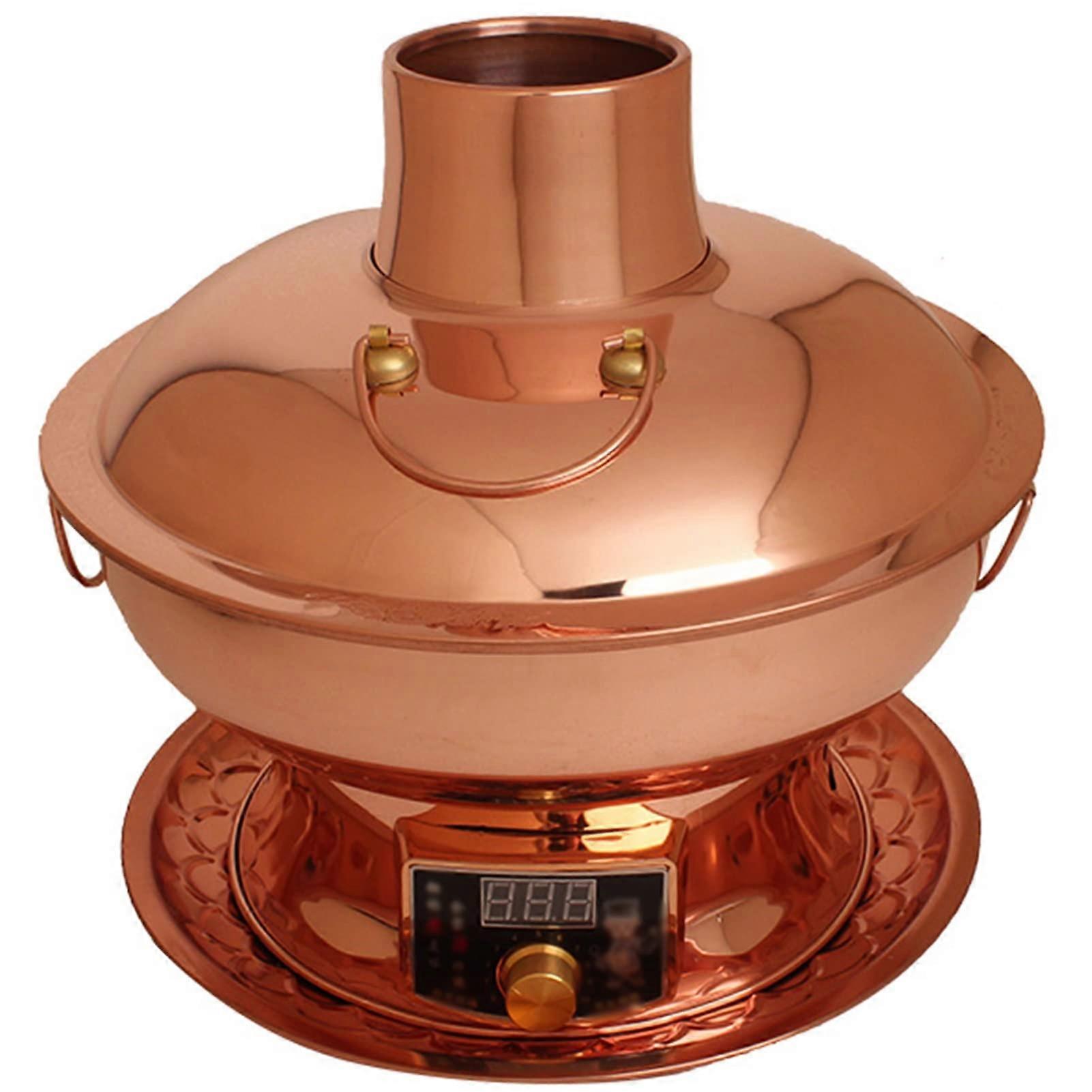 Vintage Copper Charcoal Hot Pot with Chimney, Dual Heating Modes, Large Capacity 36cm Brown